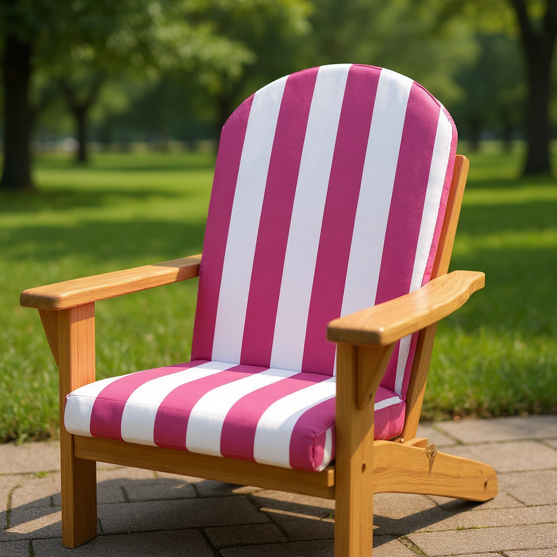 SIZE SPECIFICATIONS: Our one-piece cushion measures 48” x 20” with a 2" thick cushion and fits snugly to the back of your Adirondack or rocking chair. The back is 20"W x 30"H and the seat is 20"W x 18"D.
