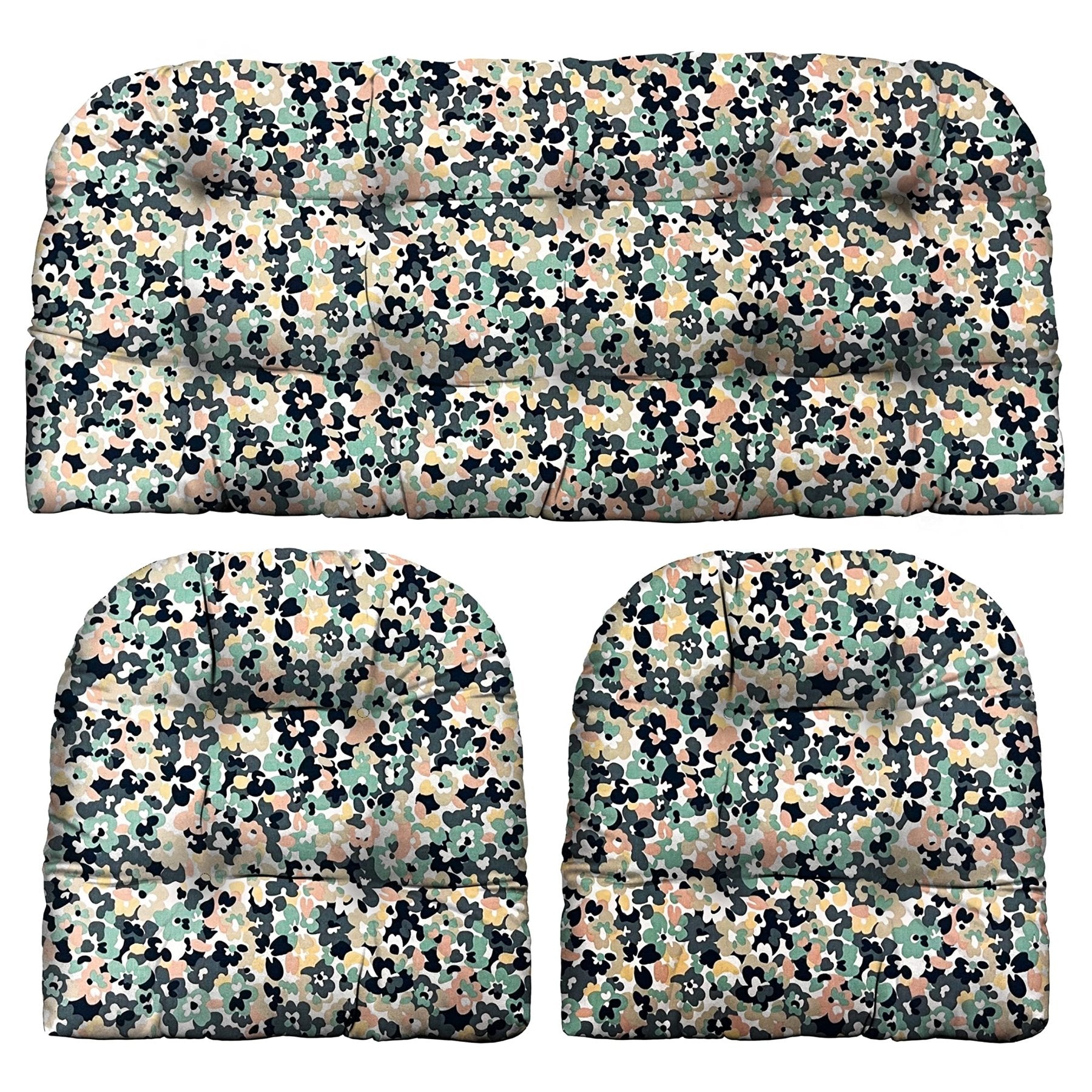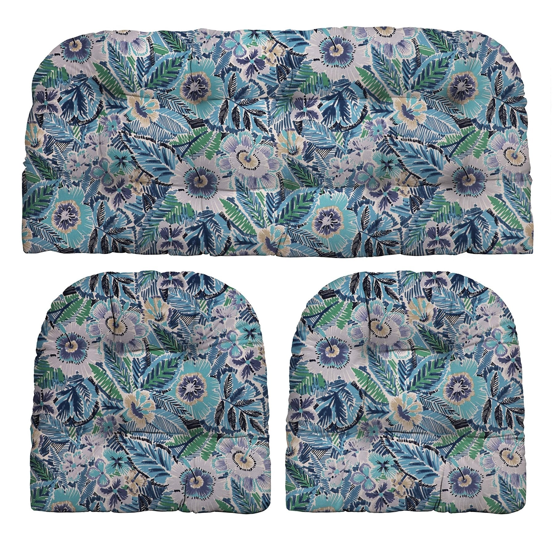 Indoor Outdoor 3 Piece Tufted Wicker Settee and Chair Cushion Set, All Weather, Water & Fade Resistant Polyester Fabric, 1 Loveseat Cushion 41”x19” & 2 U-Shape Chair Cushion 19”x19”
