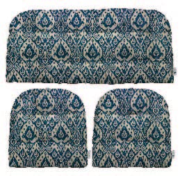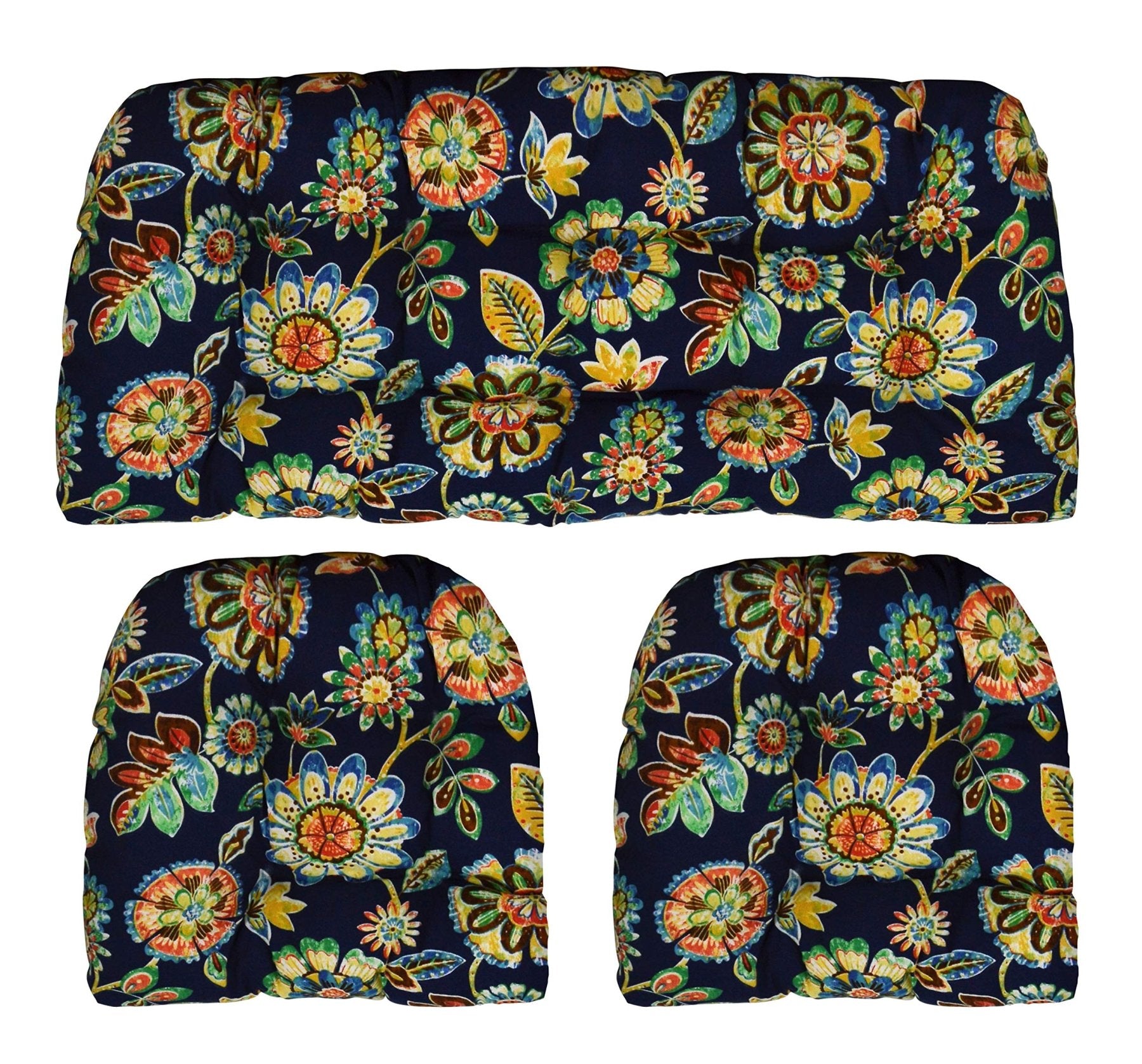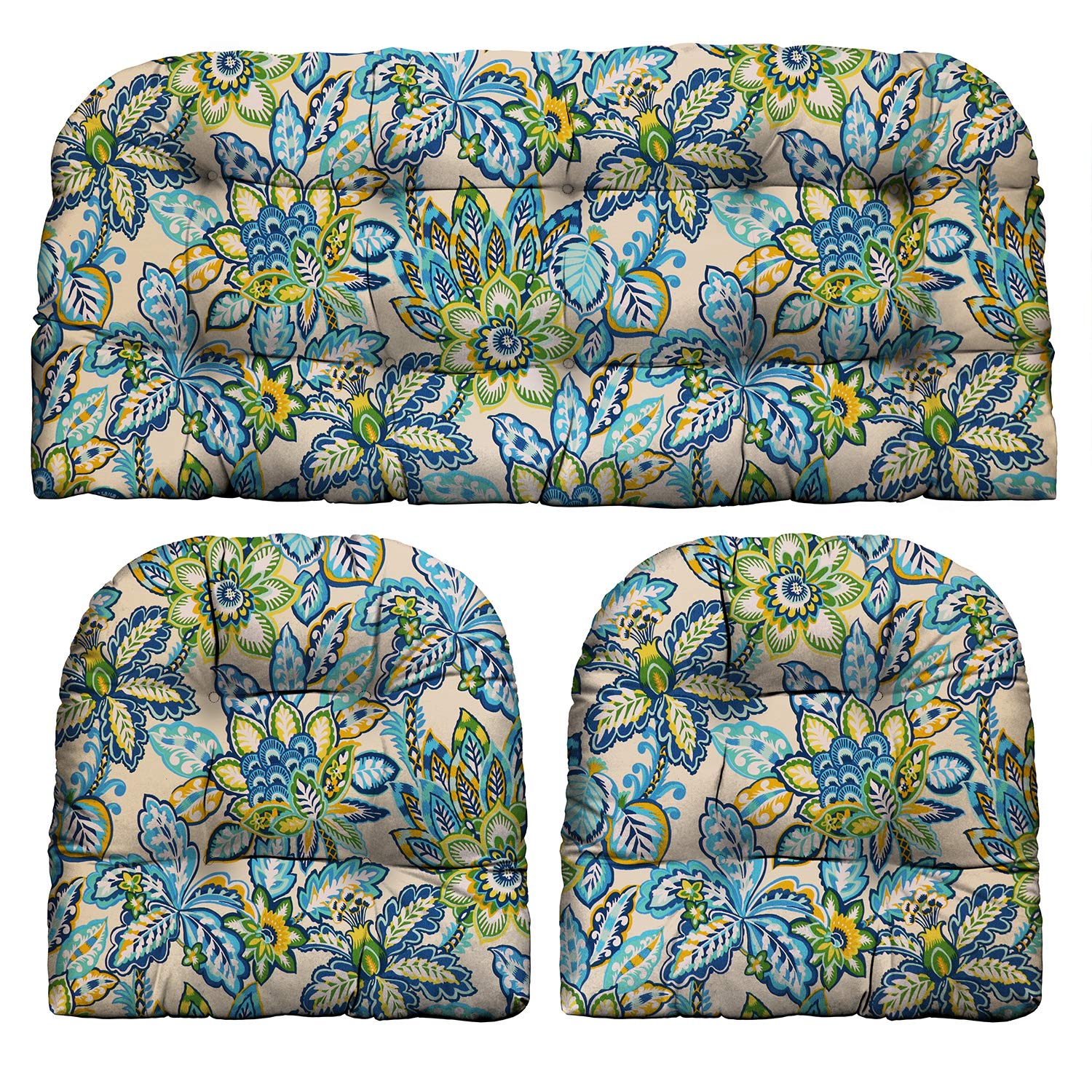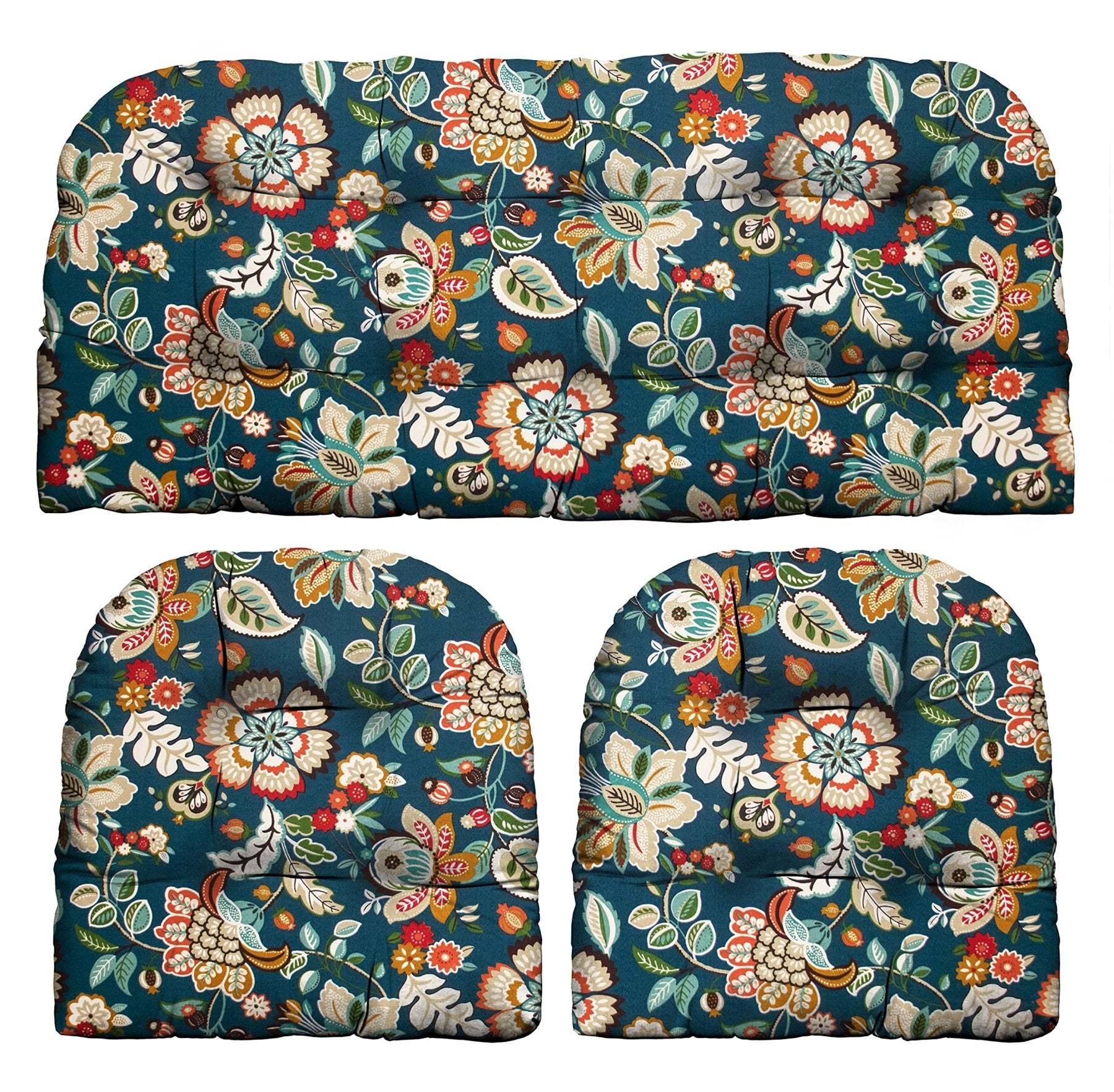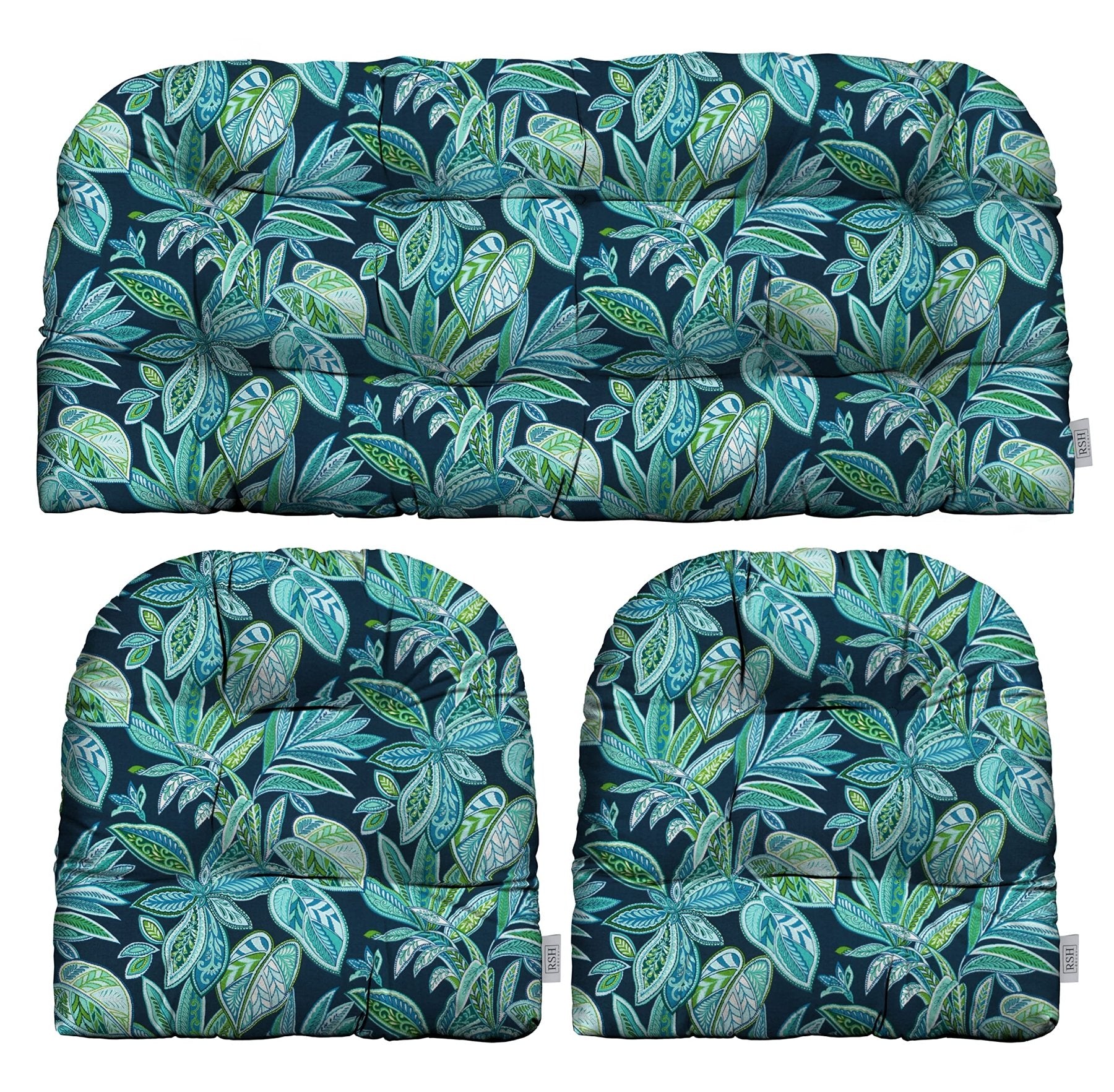 Indoor Outdoor 3 Piece Tufted Wicker Settee and Chair Cushion Set, All Weather, Water & Fade Resistant Polyester Fabric, 1 Loveseat Cushion 44” x 22” & 2 U-Shape Chair Cushions 22”x 22”