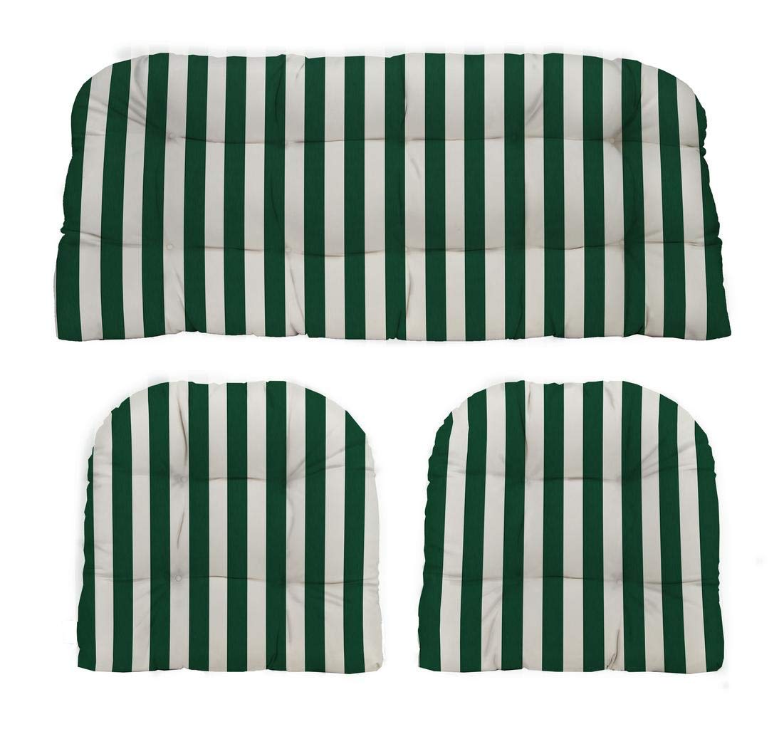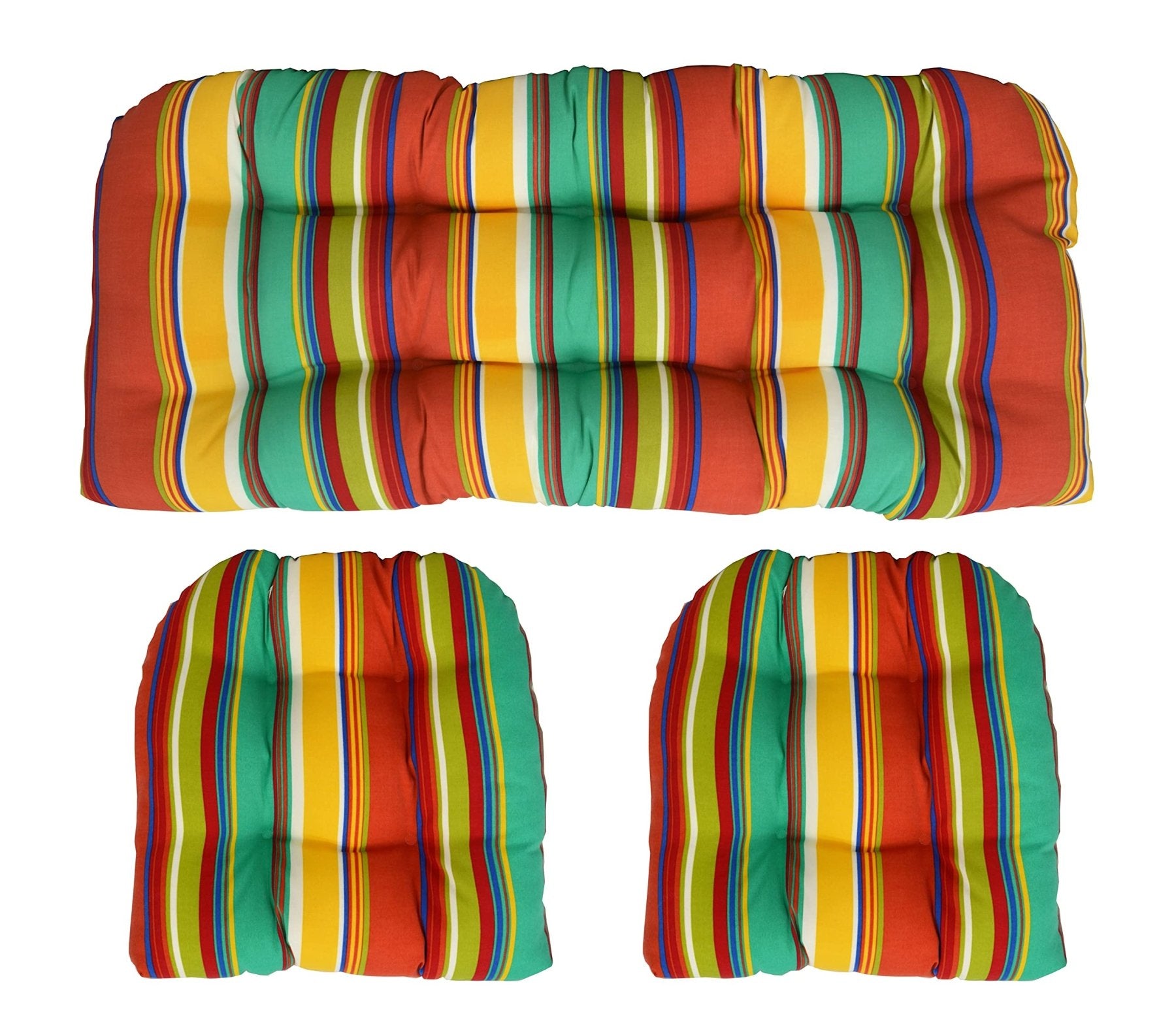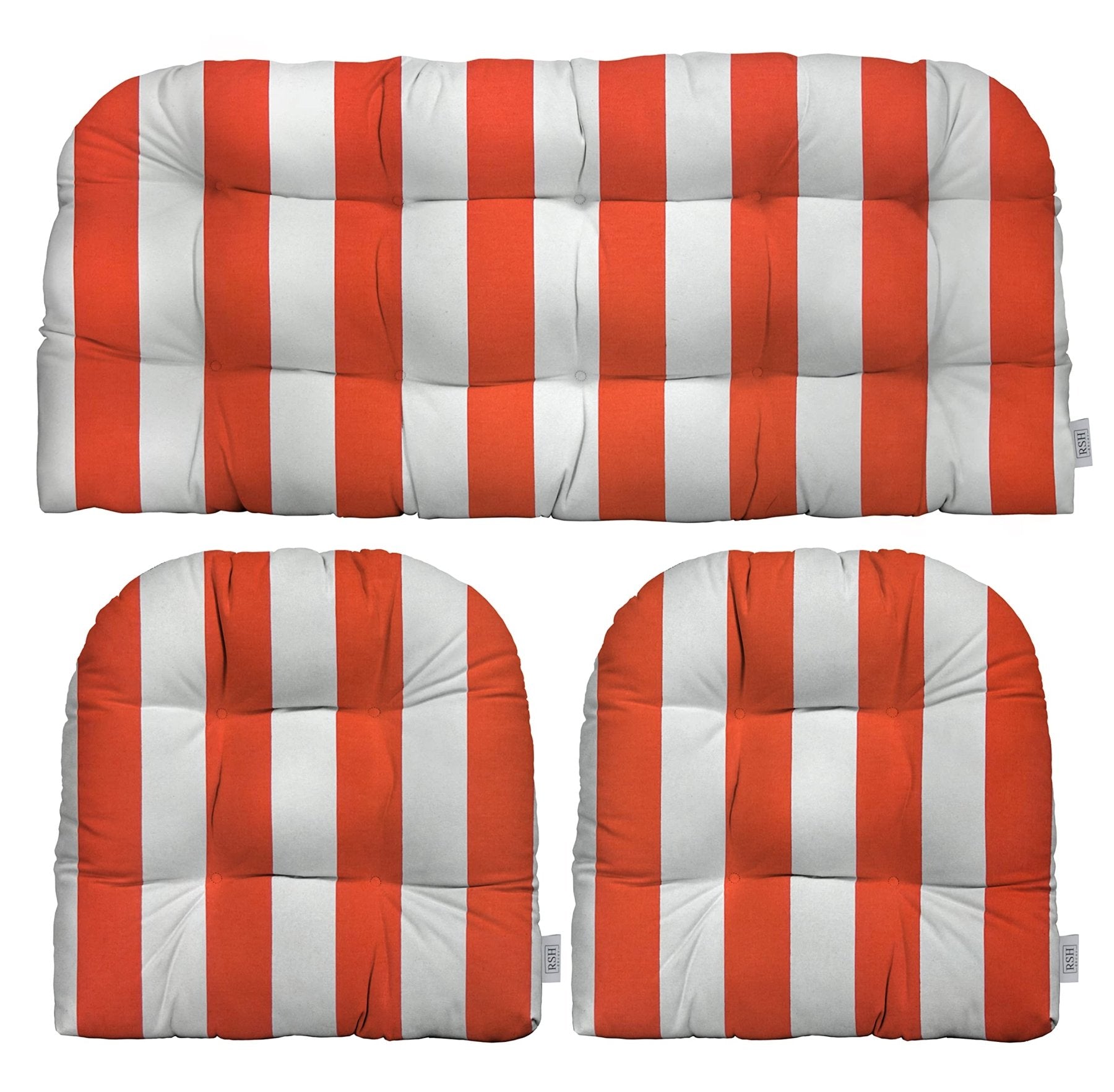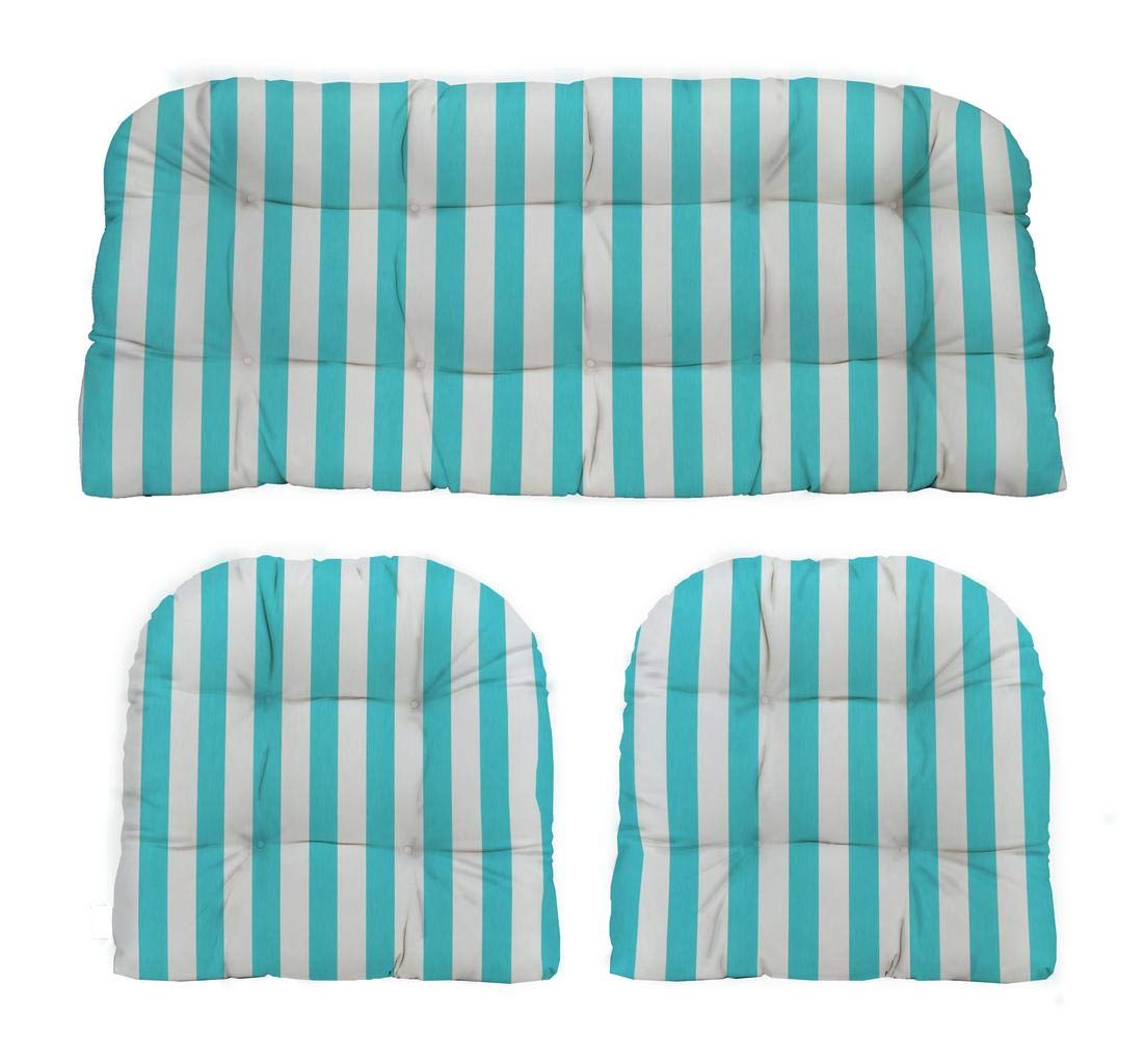Indoor Outdoor 3 Piece Tufted Wicker Settee and Chair Cushion Set, All Weather, Water & Fade Resistant Polyester Fabric, 1 Loveseat Cushion 44” x 22” & 2 U-Shape Chair Cushions 22”x 22”