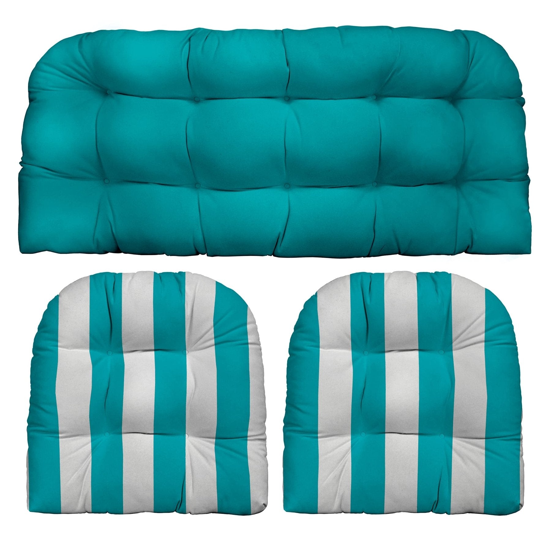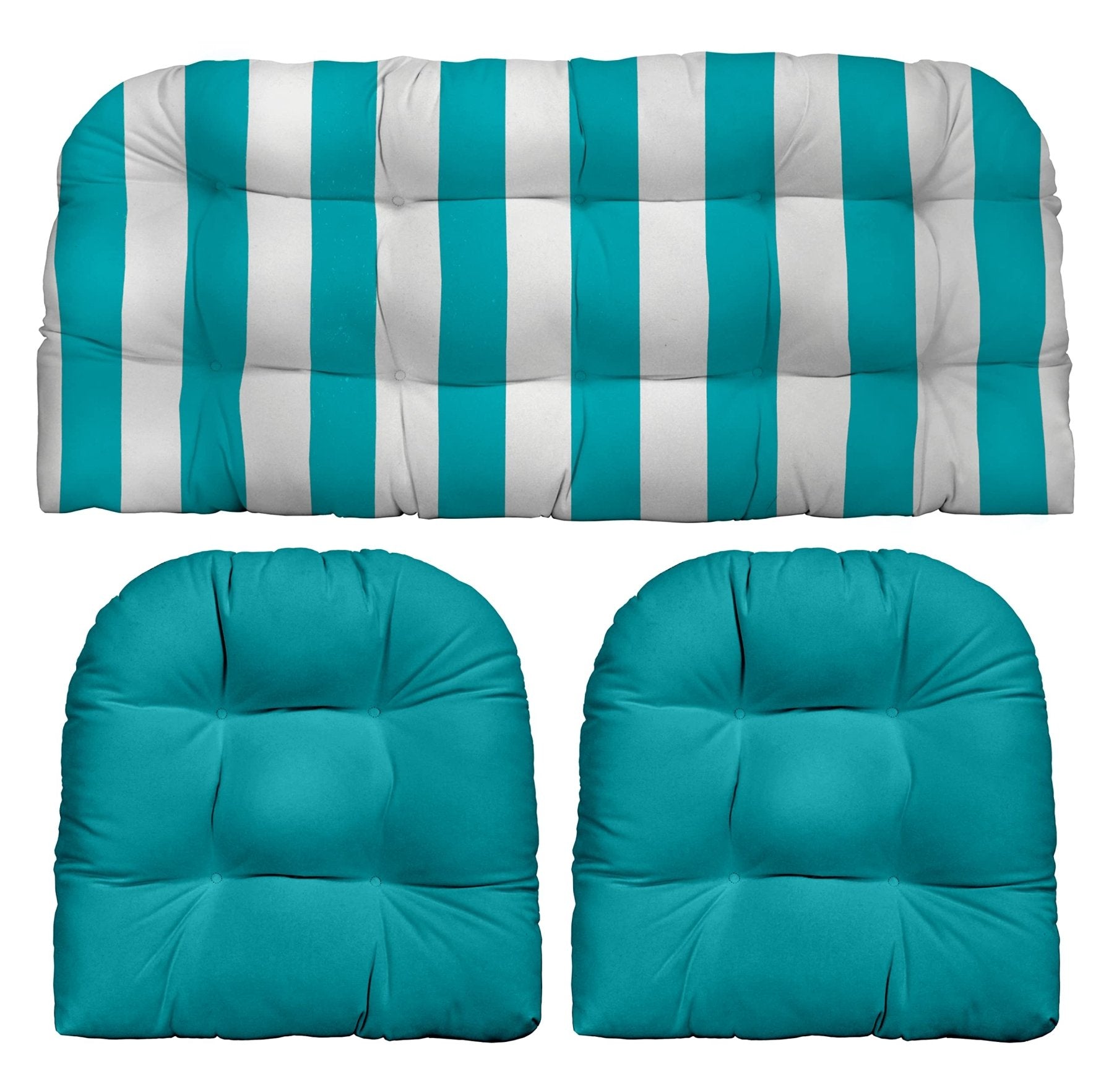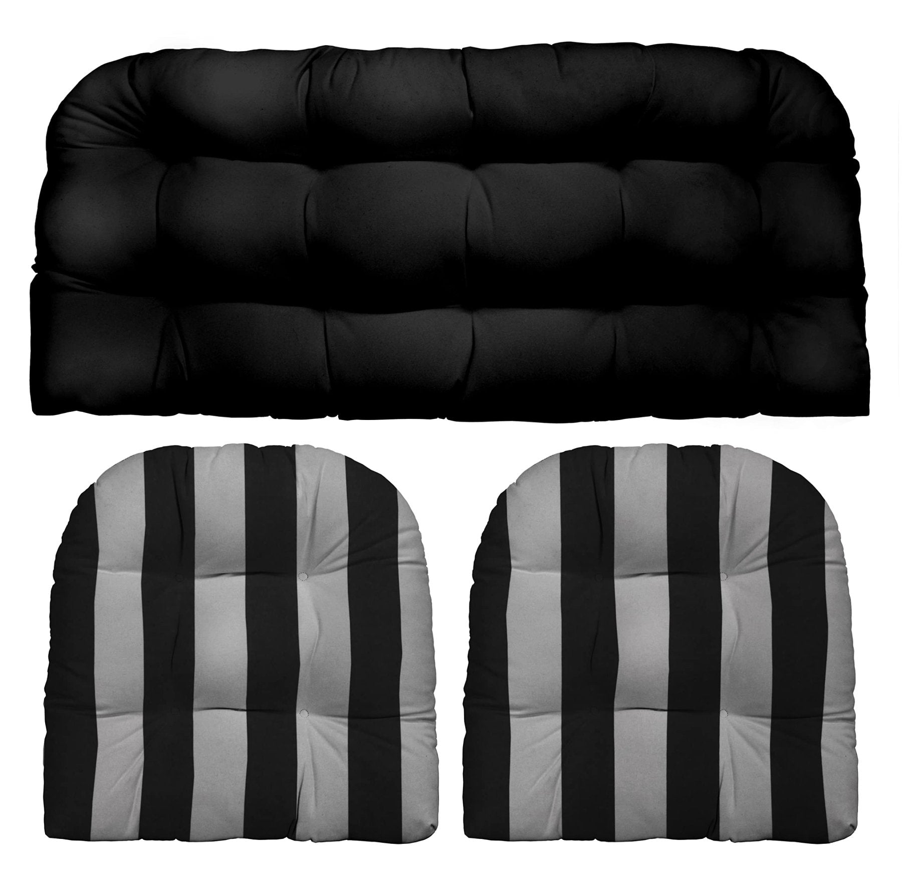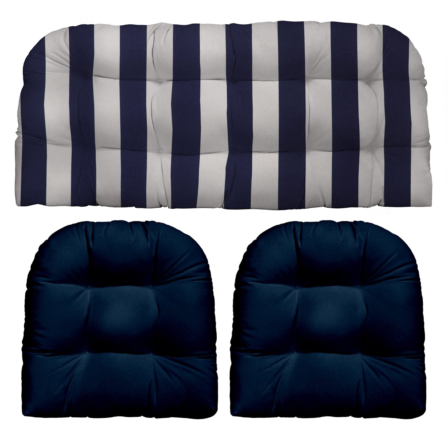 Indoor Outdoor 3 Piece Tufted Wicker Settee and Chair Cushion Set by RSH Décor, All Weather & Fade Resistant Polyester Fabric, 1 Loveseat Cushion 41”x19” & 2 U-Shape Chair Cushion 19”x19”