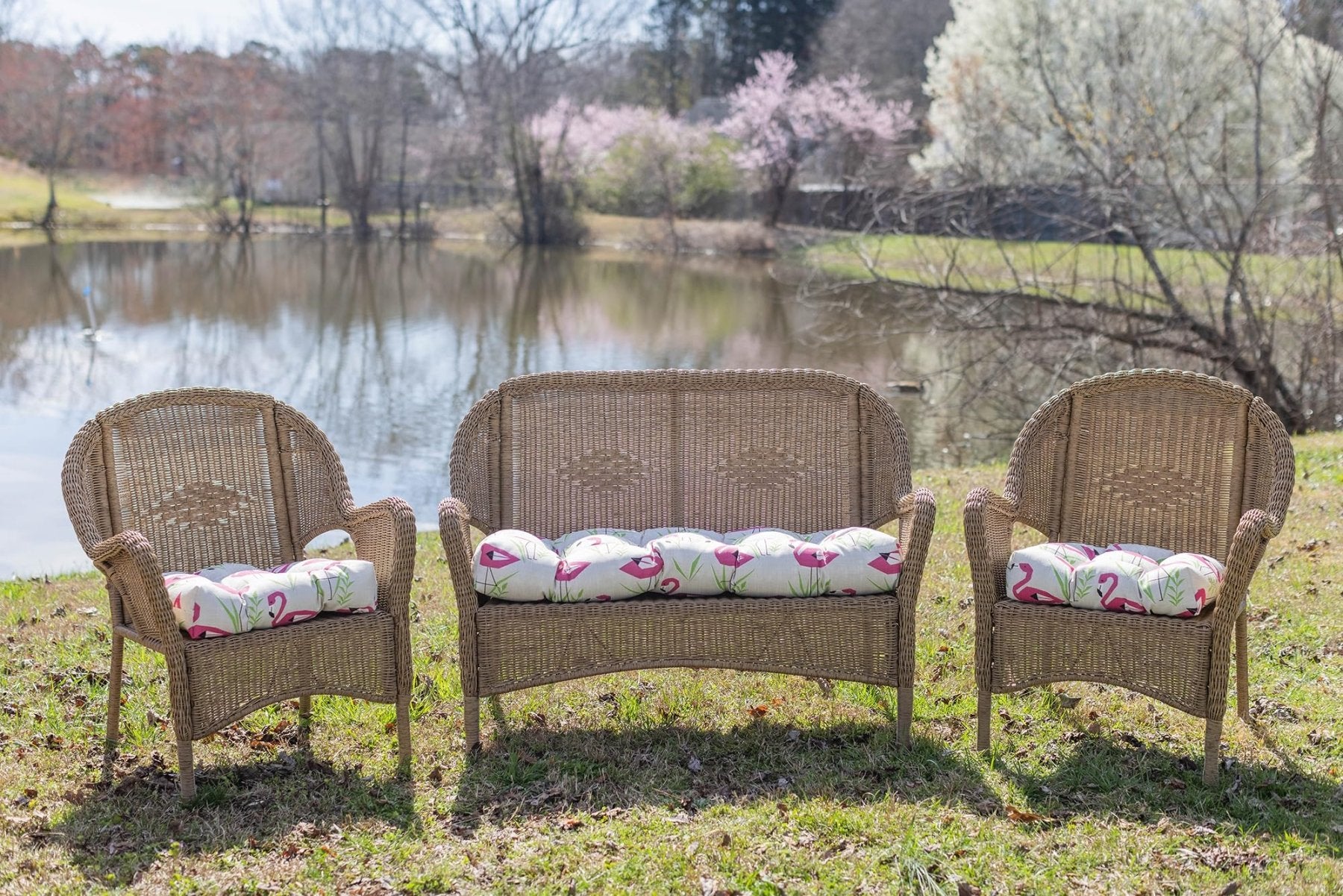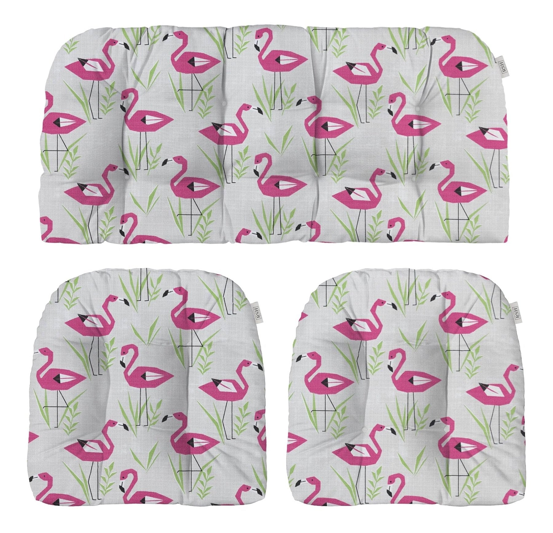RSH DECOR: 3-Piece Wicker Tufted Cushion Set | 41” x 19" & 19" x 19" | All-Weather Spun Fabric | Water-Resistant | Outdoor Loveseat & U-Shape Cushions for Patio Furniture | Groove Pink Flamingo