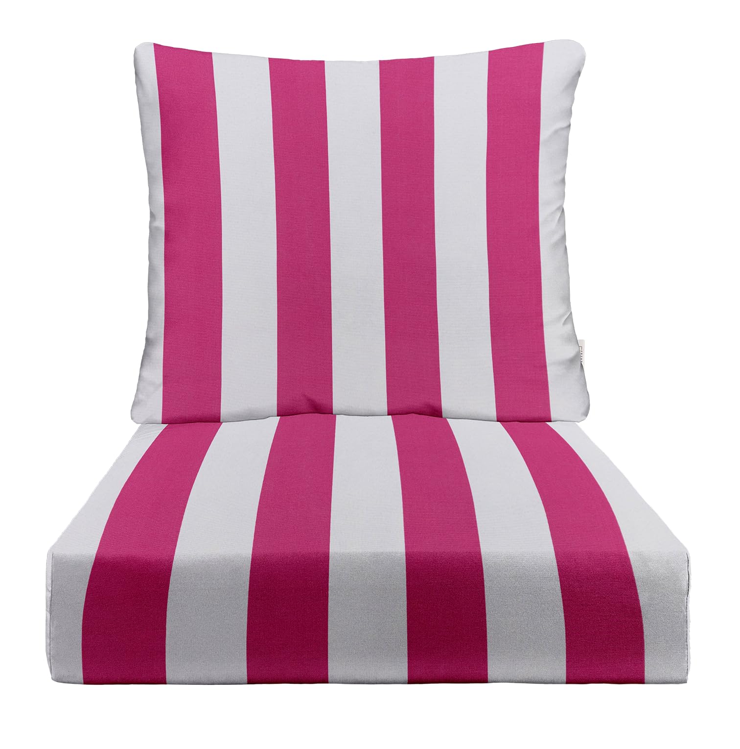 RSH DECOR Deep Seating Cushion with Pillow Back | 23” x 25” x 5" Seat | Water and Fade - Resistant Spun Fabric | Made in USA | Outdoor Chair Cushion Set for Patio Furniture (Pink & White Stripe) - RSH Decor