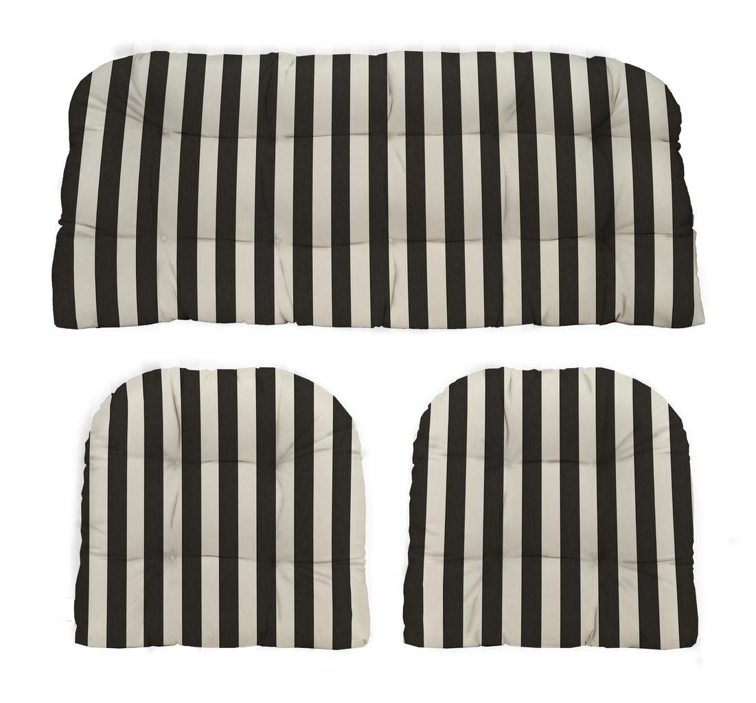 RSH Decor Indoor Outdoor 3 Piece Tufted Wicker Cushion Set, Loveseat 41" x 19" and U - Shapes 19" x 19", Made with Black & White Cabana Stripe Fabric - RSH Decor