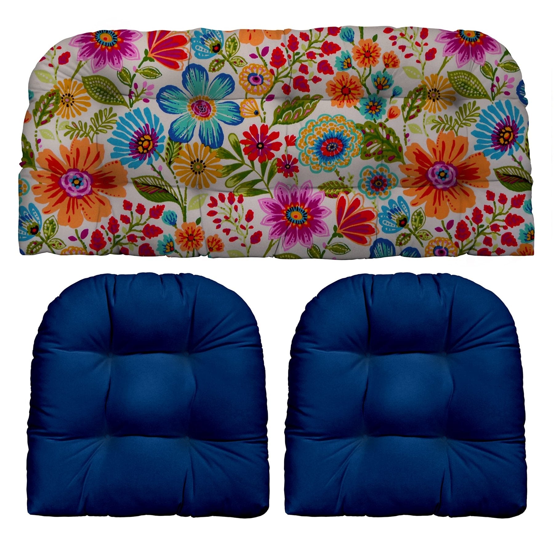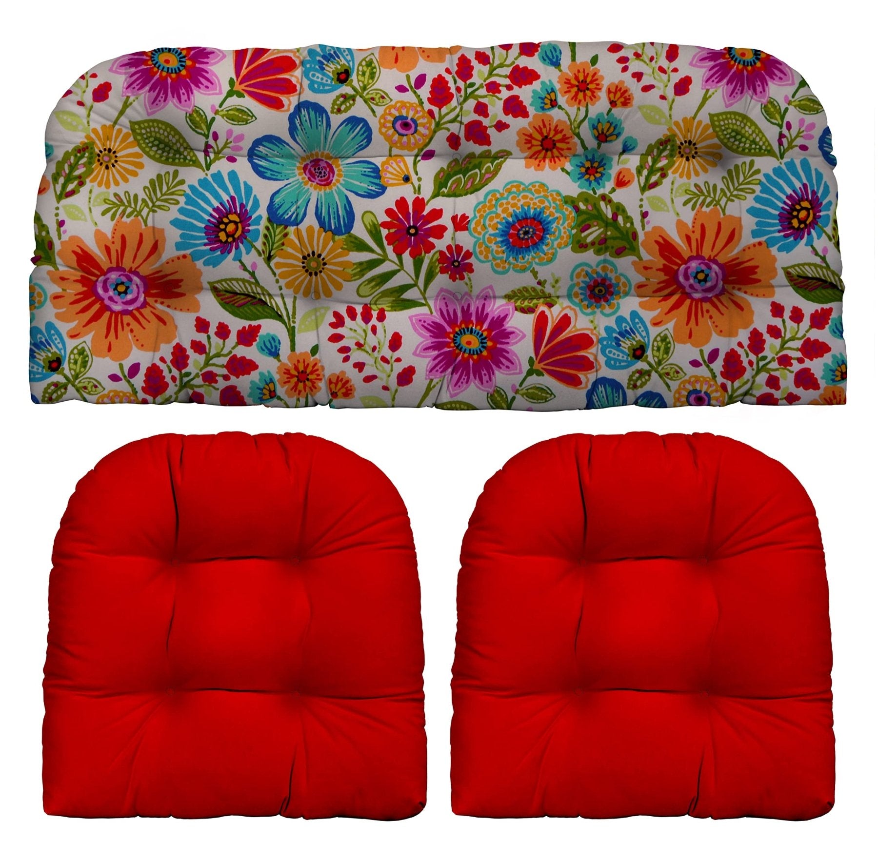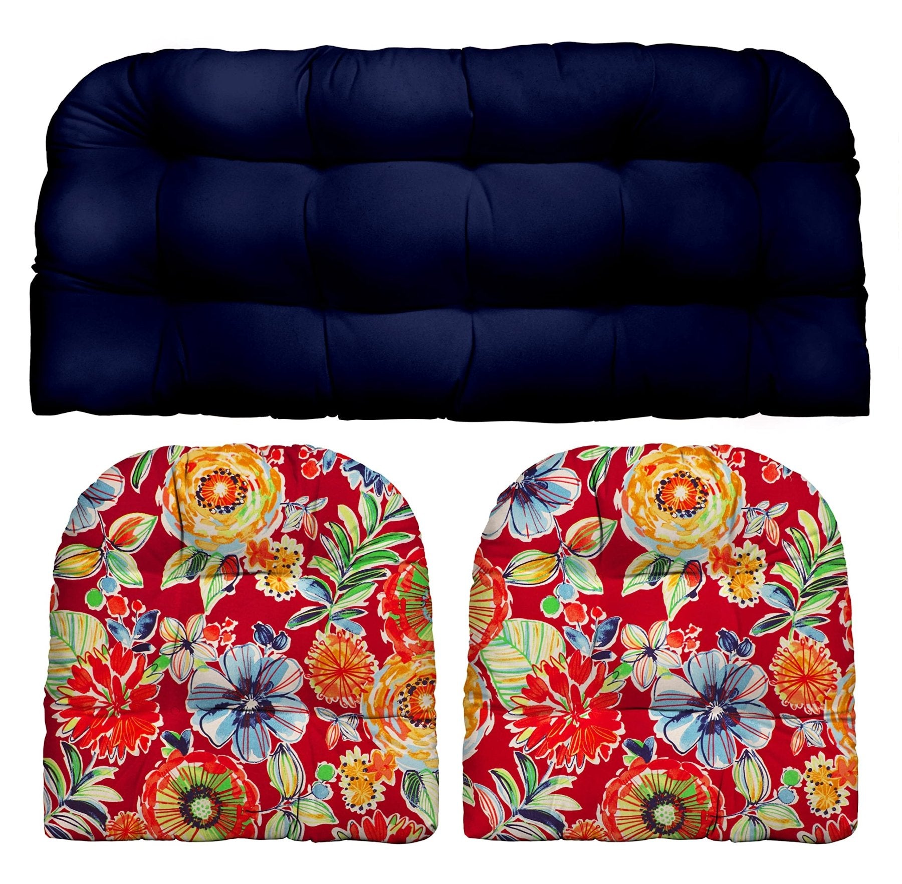 RSH Décor Indoor Outdoor 3 Piece Wicker Cushion Set Polyester Solids & Patterns Combo - Tufted