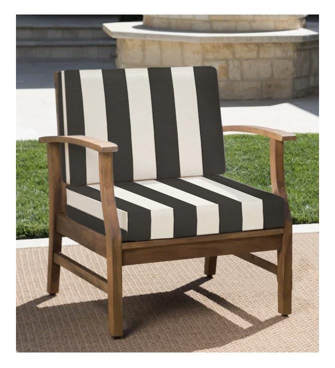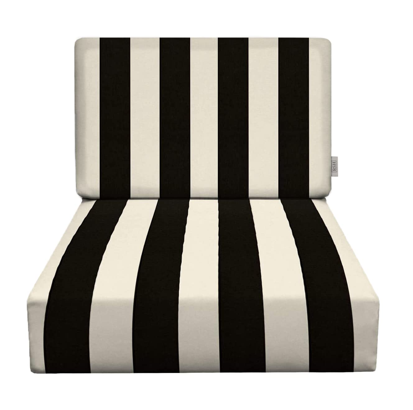 RSH Décor Indoor Outdoor All Weather Club Lounge Chair Deep Seat Cushion 22" x 24" x 4" with Foam Back Cushion 22" x 19" x 4", (Black & White Stripe)