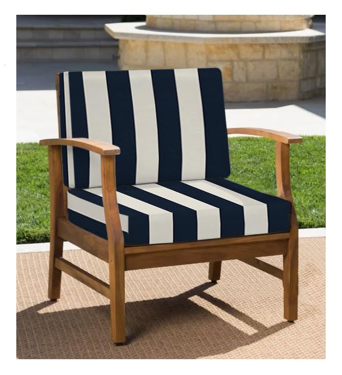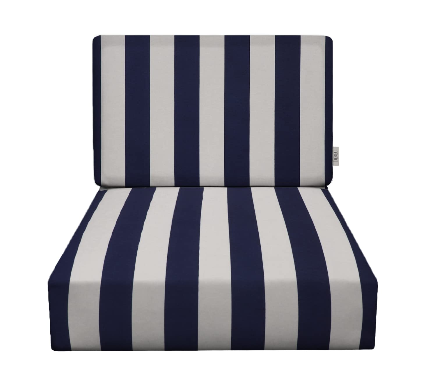 RSH Décor Indoor Outdoor All Weather Club Lounge Chair Deep Seat Cushion 22" x 24" x 4" with Foam Back Cushion 22" x 19" x 4", (Navy Blue & White Stripe)
