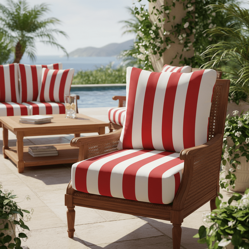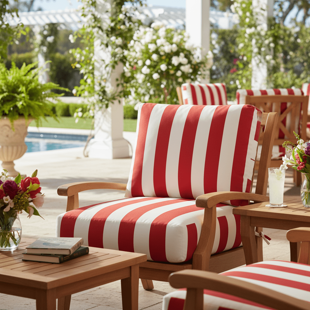Red and White Stripe Club Lounge Chair Deep Seat Cushion