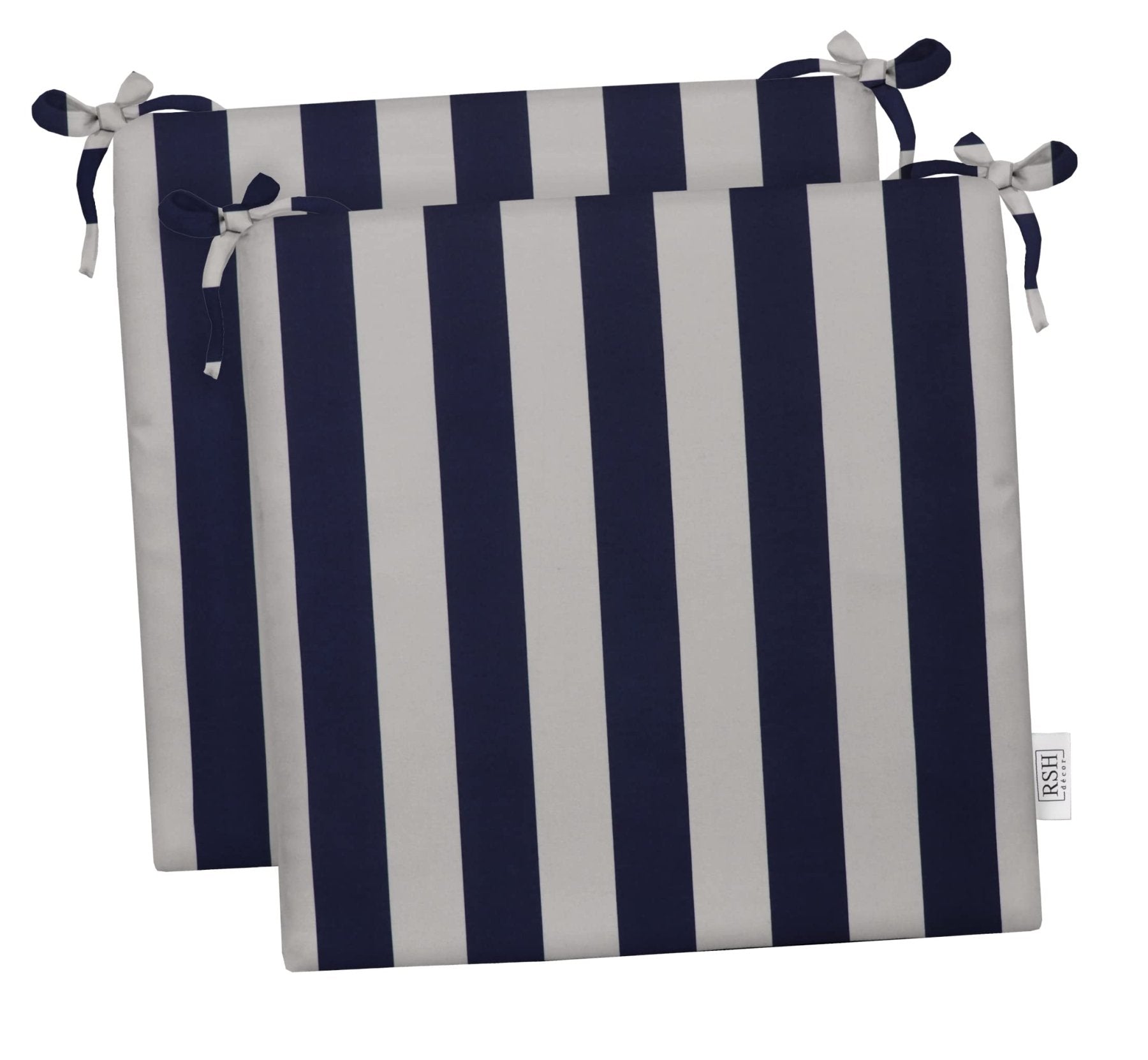 RSH DECOR Indoor / Outdoor Foam Dining Chair Seat Cushions, 17" x 17" x 2" (Navy Blue & White Stripe) (Set of 2) - RSH Decor