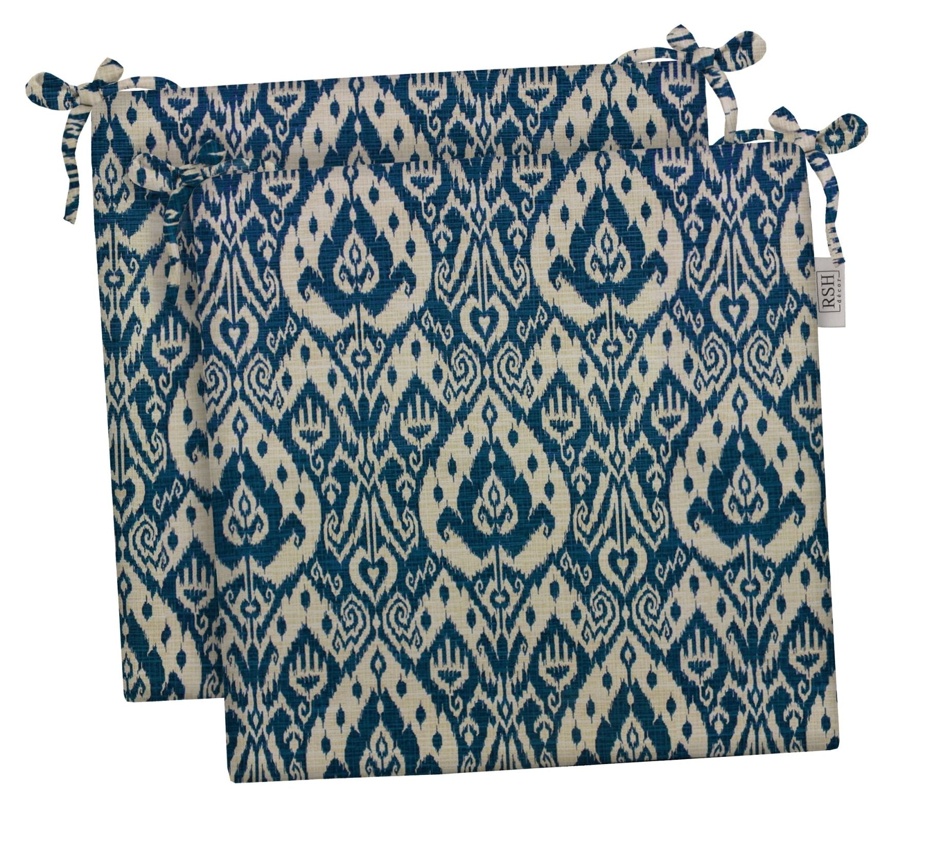 RSH Décor Indoor Outdoor Set of 2 Foam Dining Chair Seat Cushions, 17" x 17" x 2", (Ashmore Marine Blue)