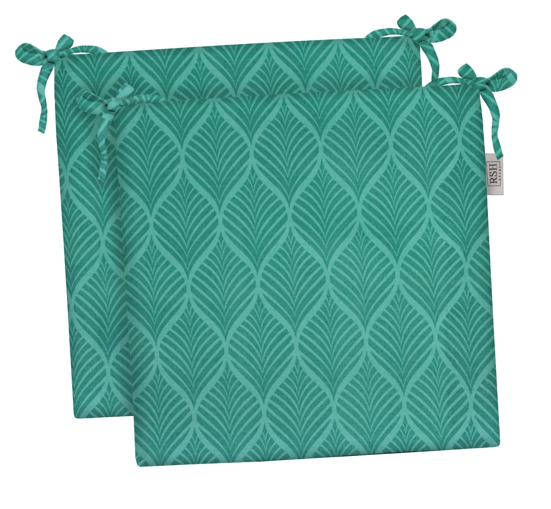 RSH Décor Indoor Outdoor Set of 2 Foam Dining Chair Seat Cushions, 17" x 17" x 2", (Fenbrook Teal) - RSH Decor