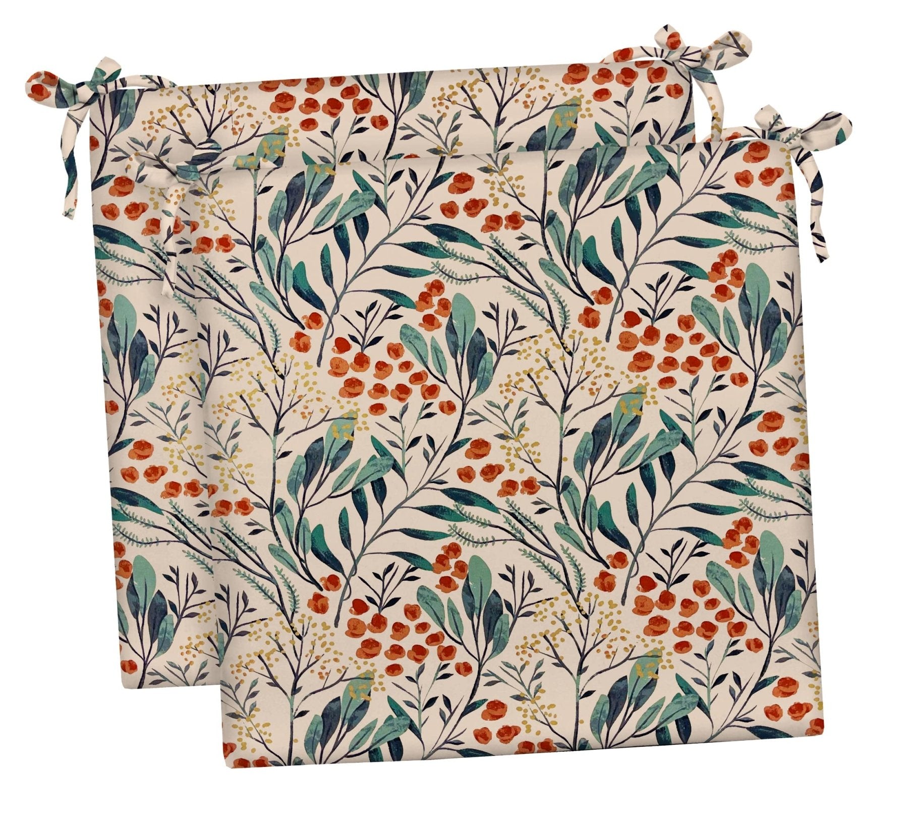 RSH Décor Indoor Outdoor Set of 2 Foam Dining Chair Seat Cushions, 17" x 17" x 2", (Gould Red Blue Floral) - RSH Decor