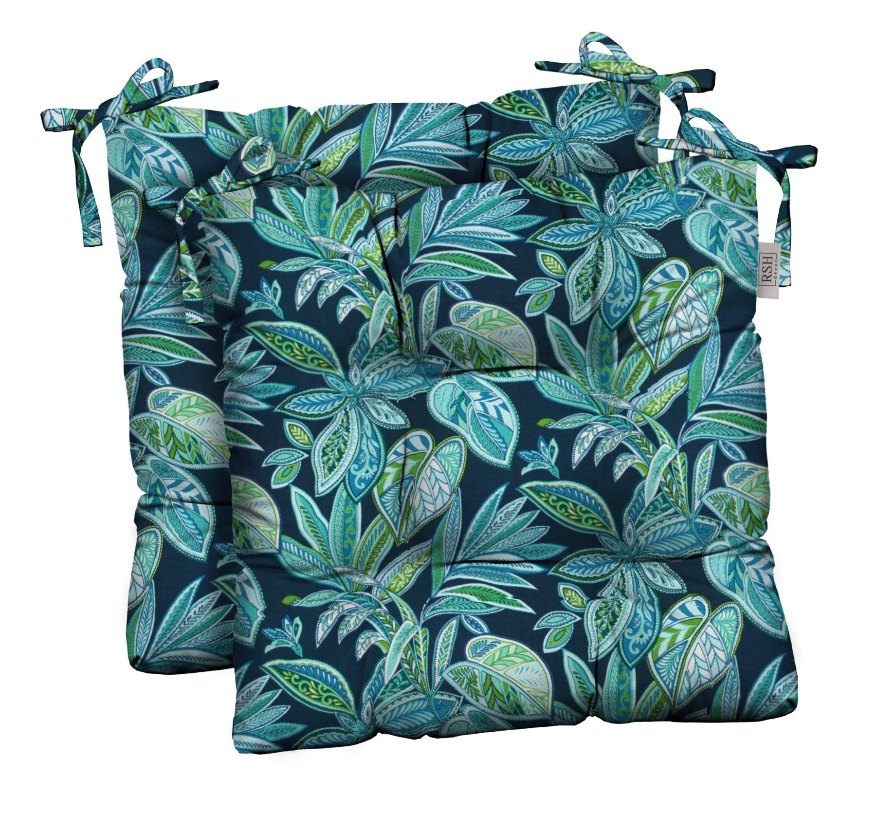 RSH Décor Indoor Outdoor Set of 2 Tufted Dining Chair Seat Cushions, 20" x 20", (Crestwood Marine Blue Leaves)