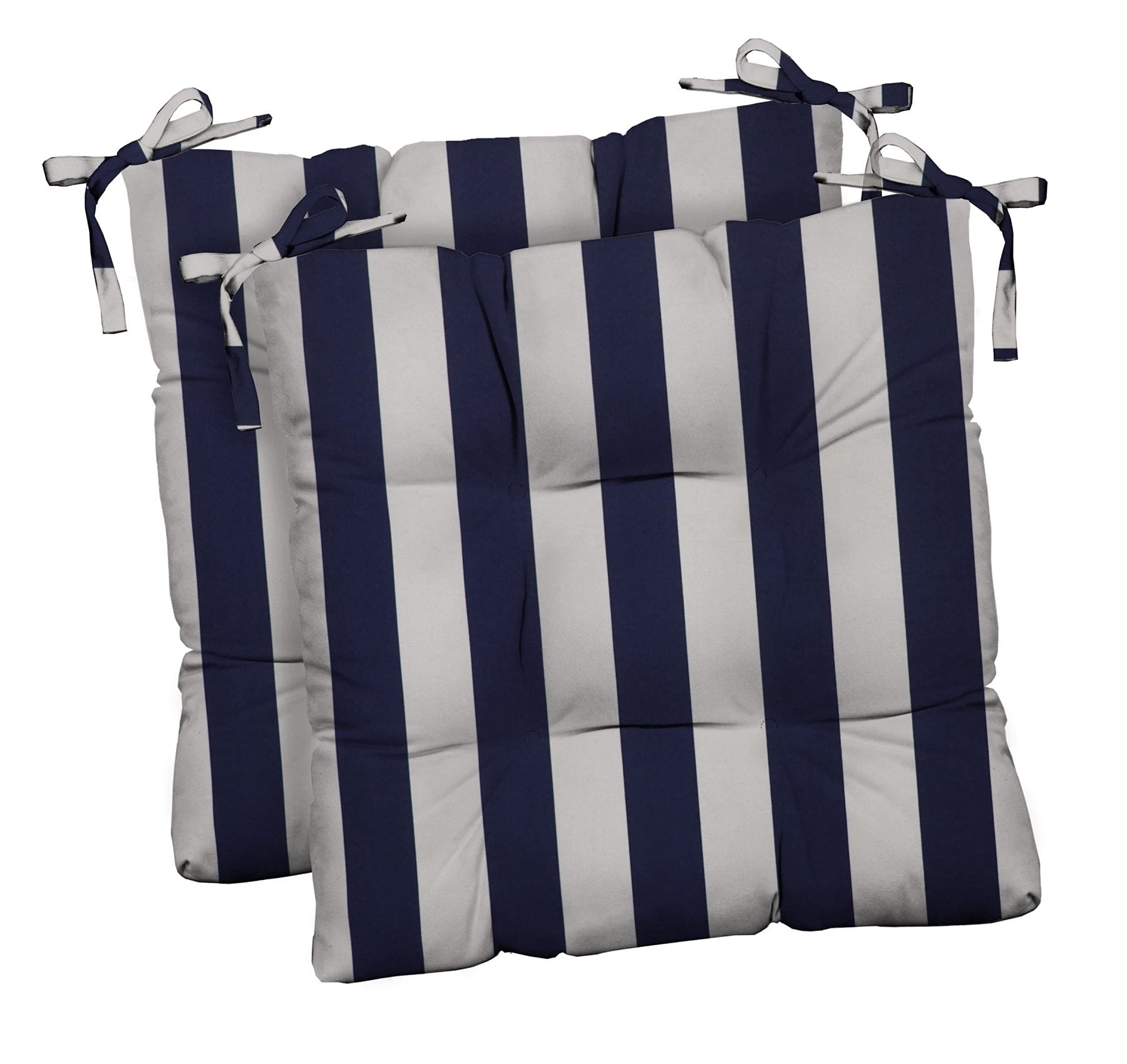 RSH DECOR Indoor / Outdoor Tufted Dining Chair Seat Cushions, 20" x 20" x 3" (Navy Blue & White Stripe) (Set of 2)
