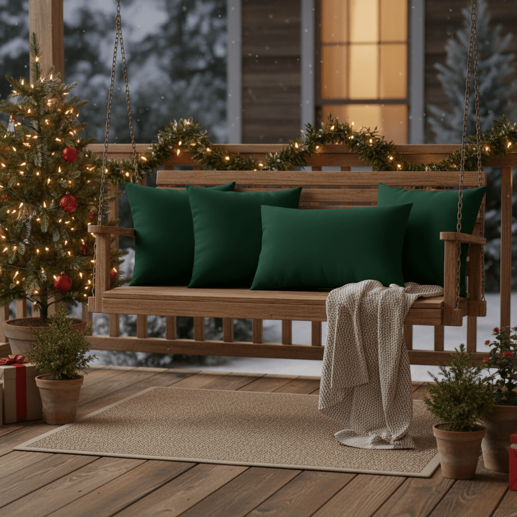 RSH DECOR: Lumbar Throw Pillows Set of 4 | 20” x 12" | All - Weather Spun Fabric | Water and Fade - Resistant | Outdoor Support Pillows for Patio Furniture | Hunter Green - RSH Decor