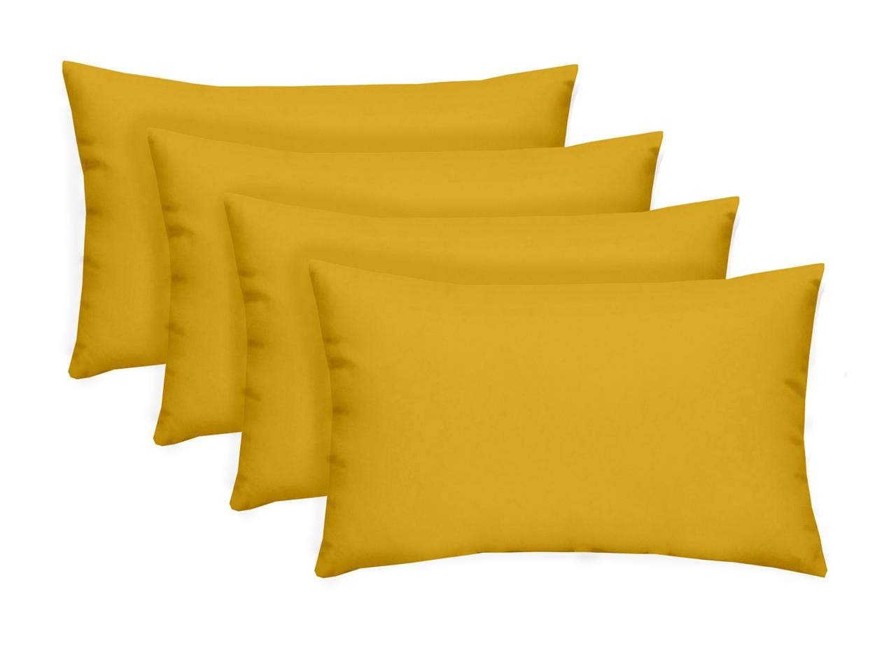 RSH DECOR: Lumbar Throw Pillows Set of 4 | 20” x 12" | All-Weather Spun Fabric | Water and Fade-Resistant | Outdoor Support Pillows for Patio Furniture | Yellow