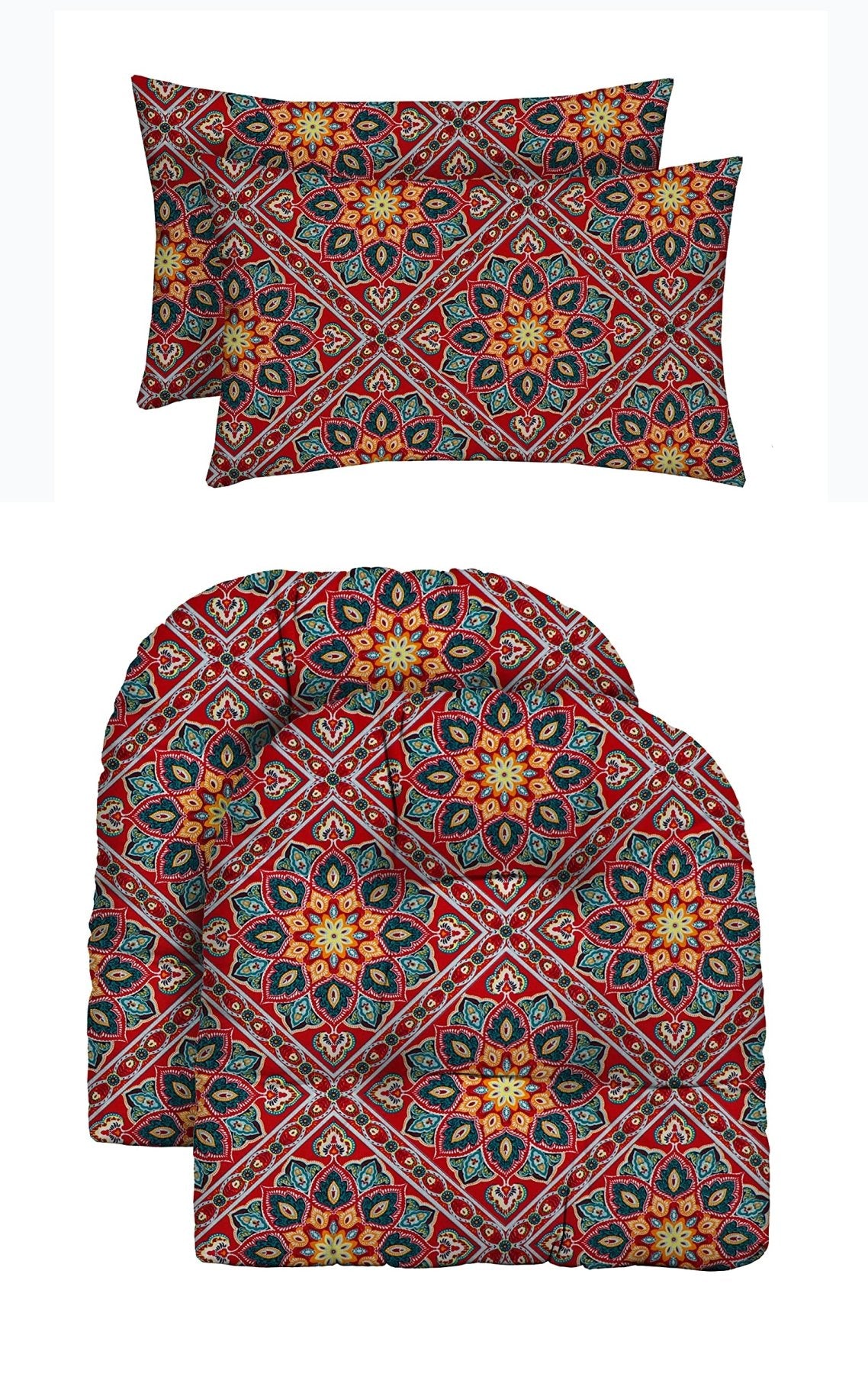 RSH Décor Set of 2 Indoor Outdoor U-Shape Cushions and 2 Lumbar Pillows Polyester Patterns - (19"x19" & 20"x12") - Tufted