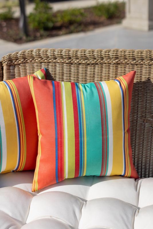 RSH DECOR: Lumbar & Square Throw Pillows Set of 4 | 20" x 12" & 17" x 17" | All - Weather Spun Fabric | Water and Fade - Resistant Accent Pillows for Patio Furniture | Bright Colorful Stripe + Solid Red - RSH Decor