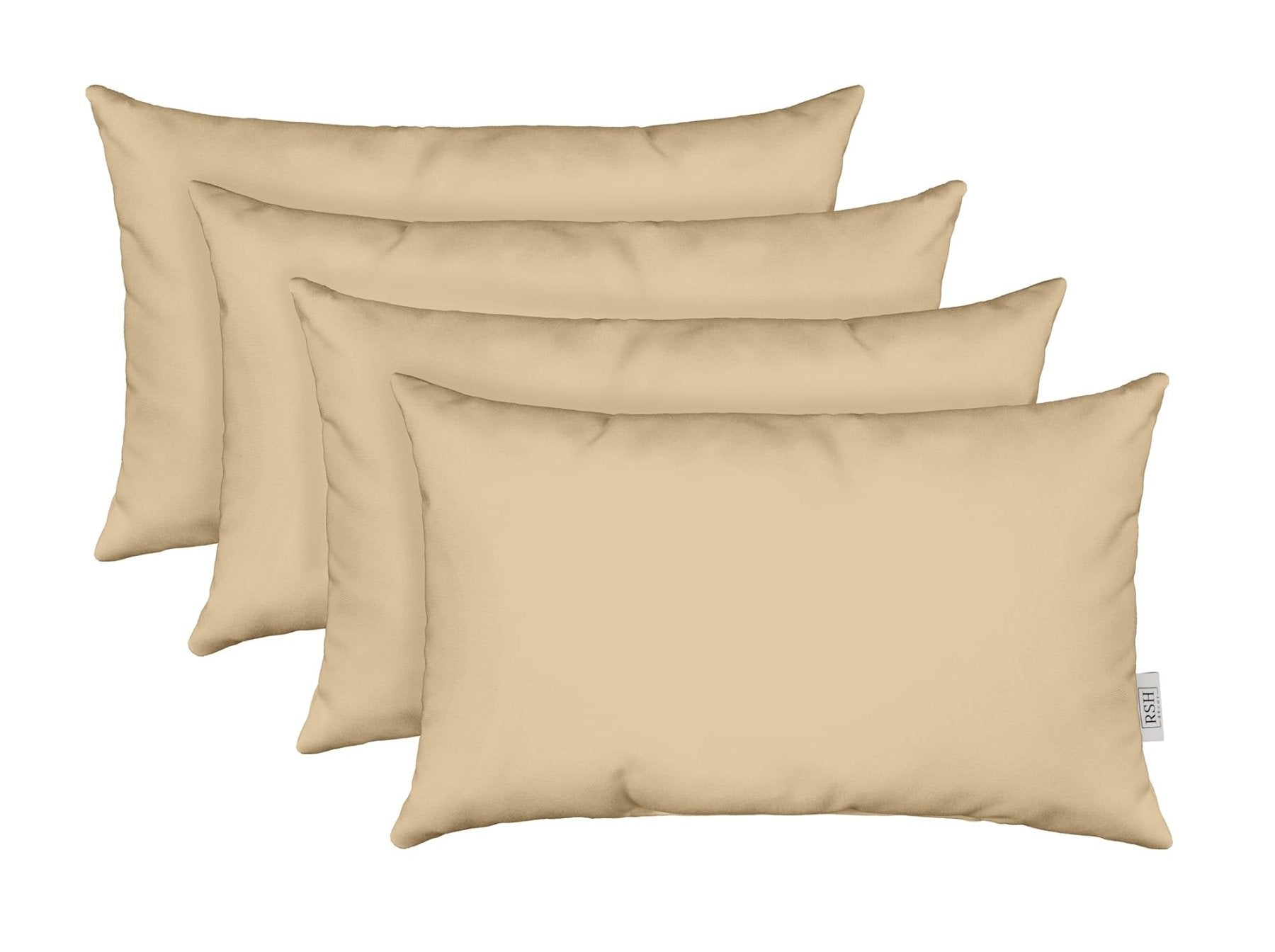 Set of 4 Indoor / Outdoor Decorative Lumbar / Rectangle Pillows - Solid Tan
