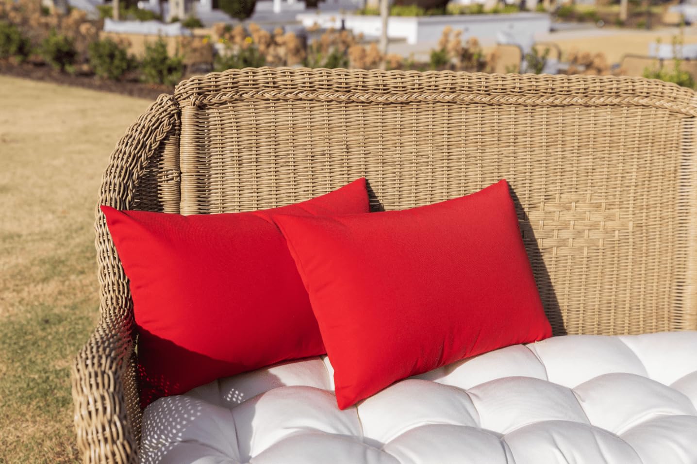 RSH Decor's lumbar pillows are crafted from Sunbrella's top-tier performance fabric. The flagship brand of family-owned Glen Raven, Inc., Sunbrella manufactures locally in South Carolina. Sunbrella is known for unparalleled durability, stain-resistance, colorfastness, and UV-protection. Our hand-crafterd decorative bolster pillows feature zipper-closed covers made with premium Sunbrella fabric and plush inserts containing luxurious down-alternative fiberfill. So kick off your shoes and enjoy yourself in style and comfort!