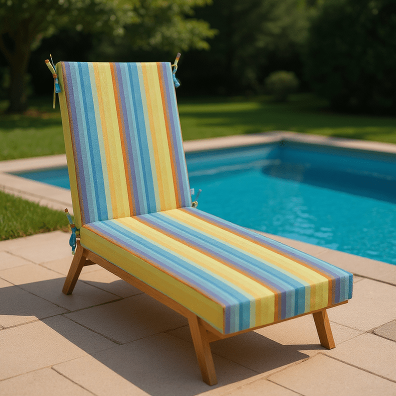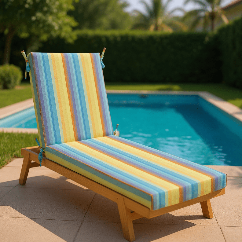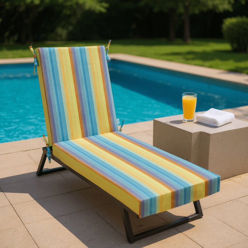 LASTING DESIGN: Our stylish chaise lounge cushion is a single piece with two zippers and a sewn hinge and contains 3” foam inserts to provide stability and comfort. Designed to fit with style, this cushion includes two sets of ties to secure our cushion to your lounge chair.