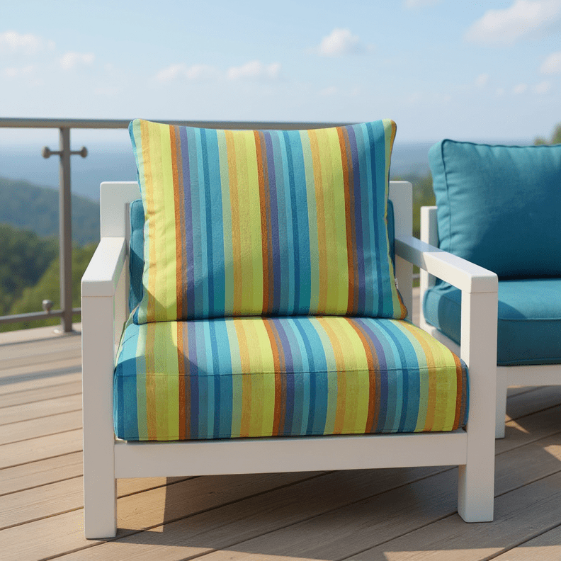Sunbrella Astoria Stripes Deep Seating Pillow Back Chair Cushion Set - RSH Decor