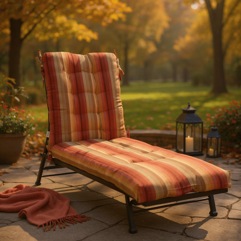 LASTING DESIGN: Our chaise lounge cushion is a single piece with a sewn hinge and sewn seams. Both pieces are filled with hypoallergenic hospitality-grade polyester fiberfill to provide both softness and durability. Designed to fit with style, this cushion includes two sets of ties to secure our cushion to your lounge chair.