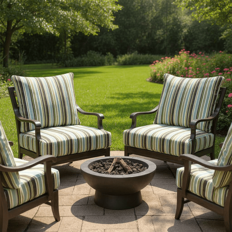 LASTING DESIGN: This deep seating set consists of a foam-filled seat cushion and a pillow back cushion. The bottom cushion is zipper-closed and contains a 5” thick poly foam insert and the pillow back cushion is closed with a sewn seam and filled with hypoallergenic hospitality-grade fiberfill.