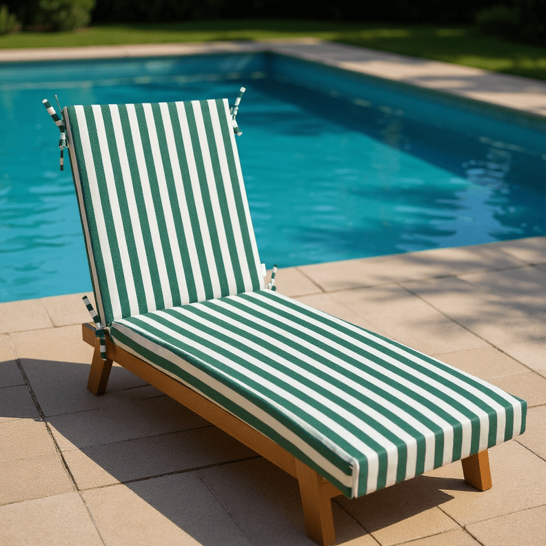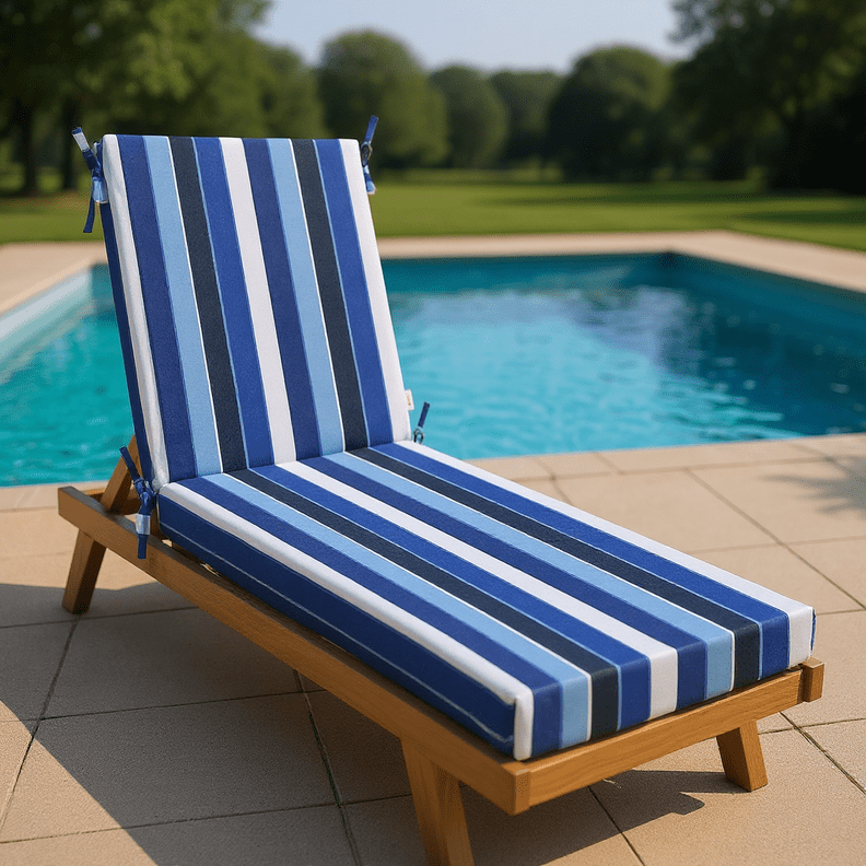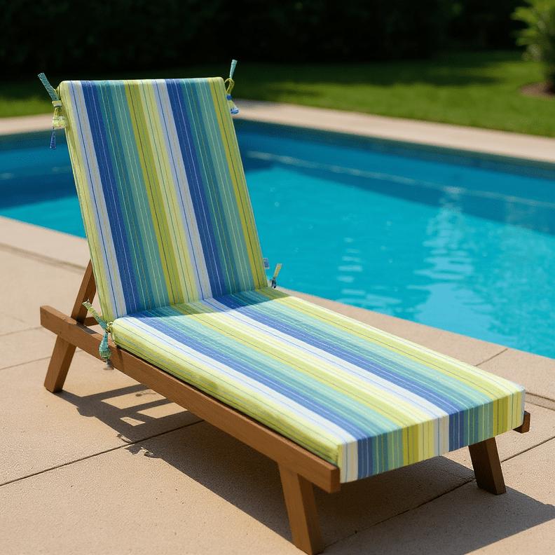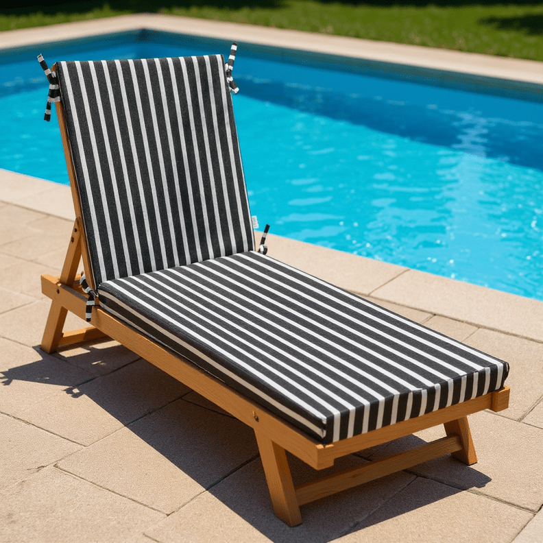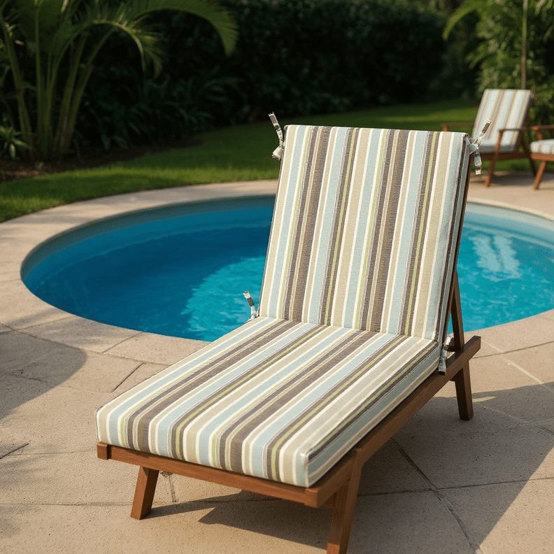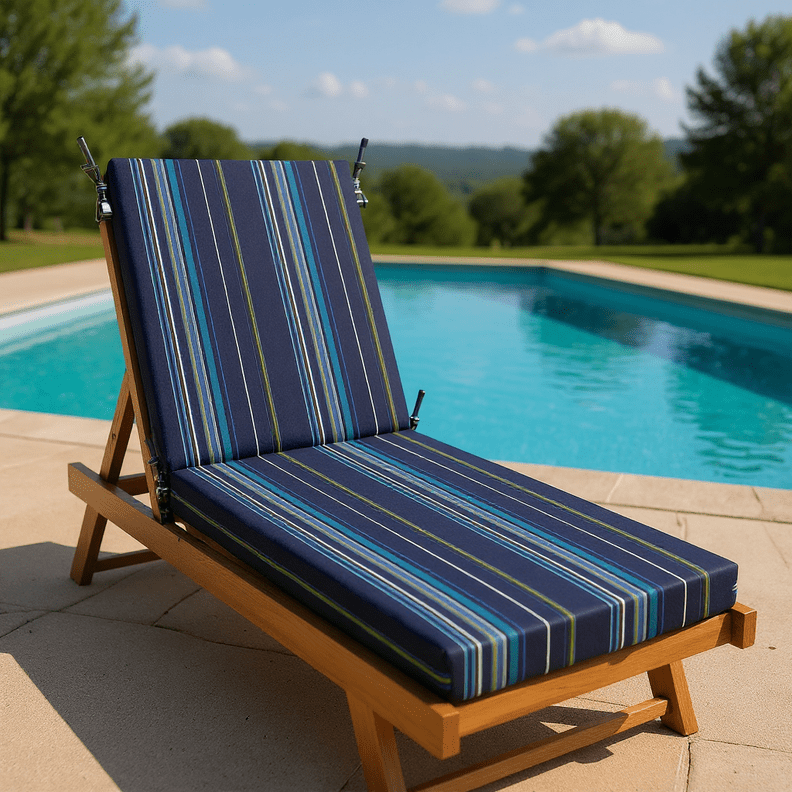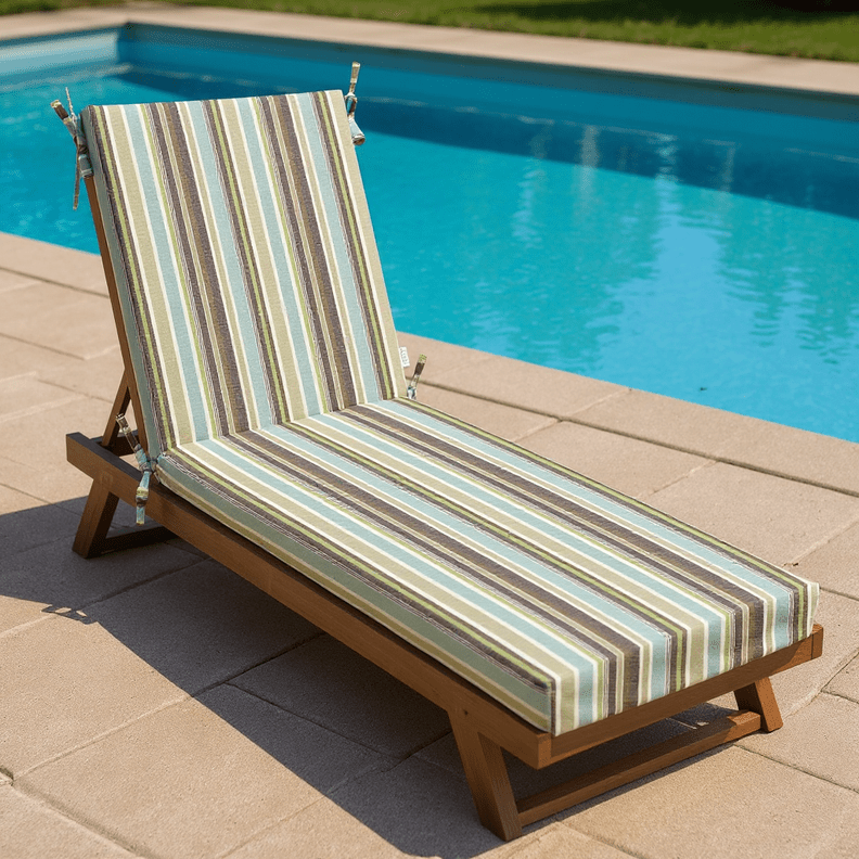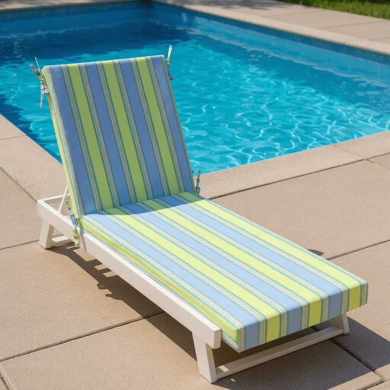 LASTING DESIGN: Our stylish chaise lounge cushion is a single piece with two zippers and a sewn hinge and contains 3” foam inserts to provide stability and comfort. Designed to fit with style, this cushion includes two sets of ties to secure our cushion to your lounge chair.