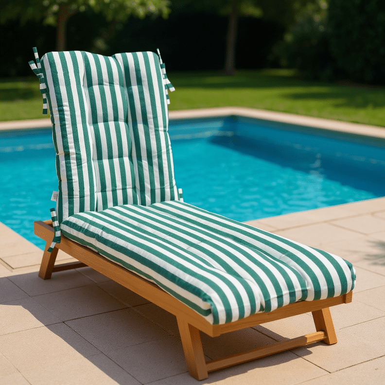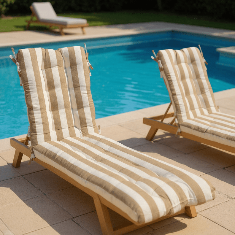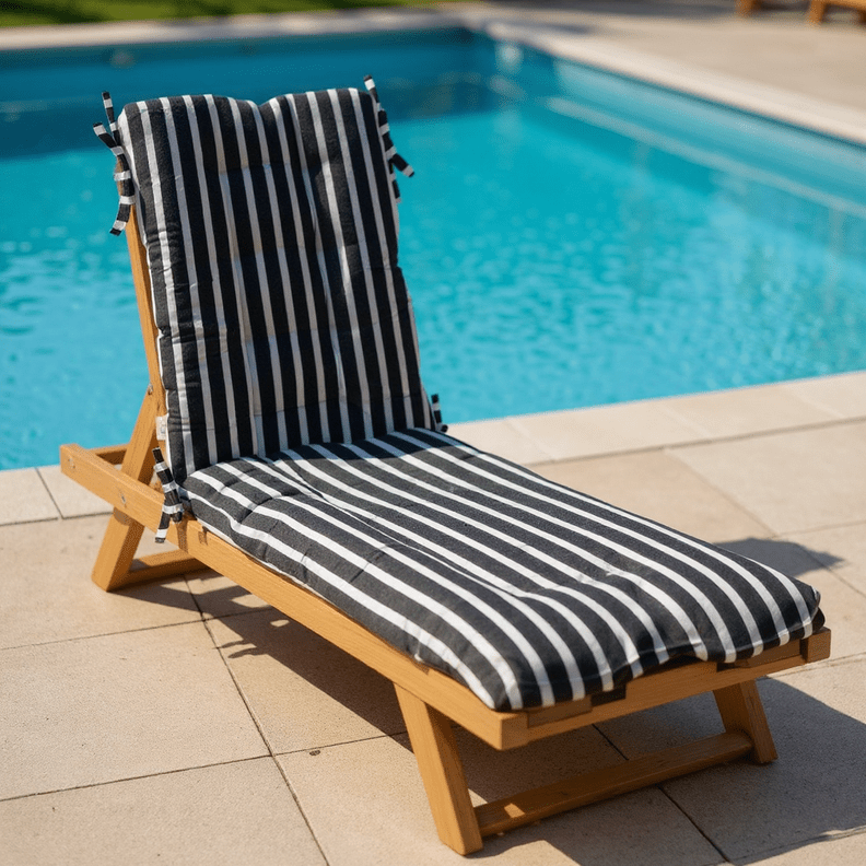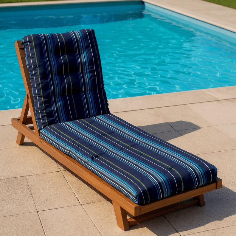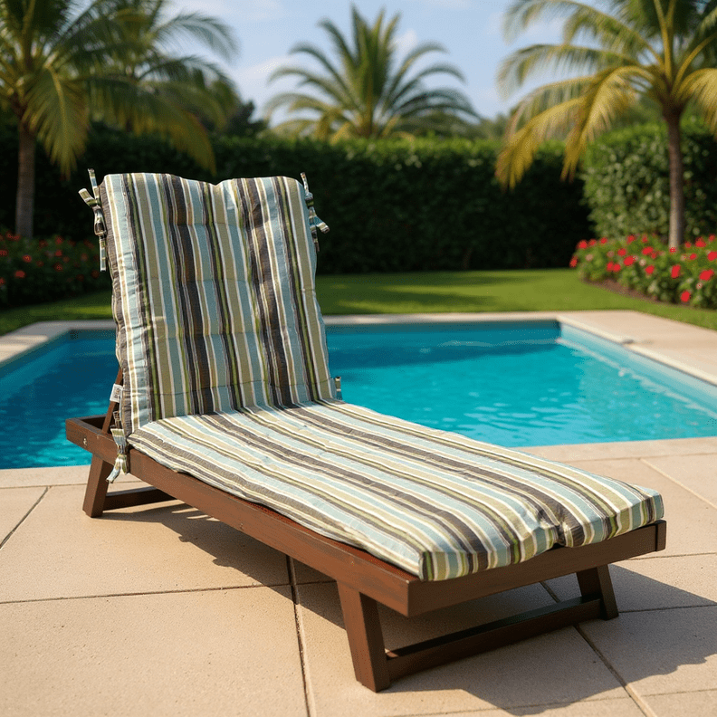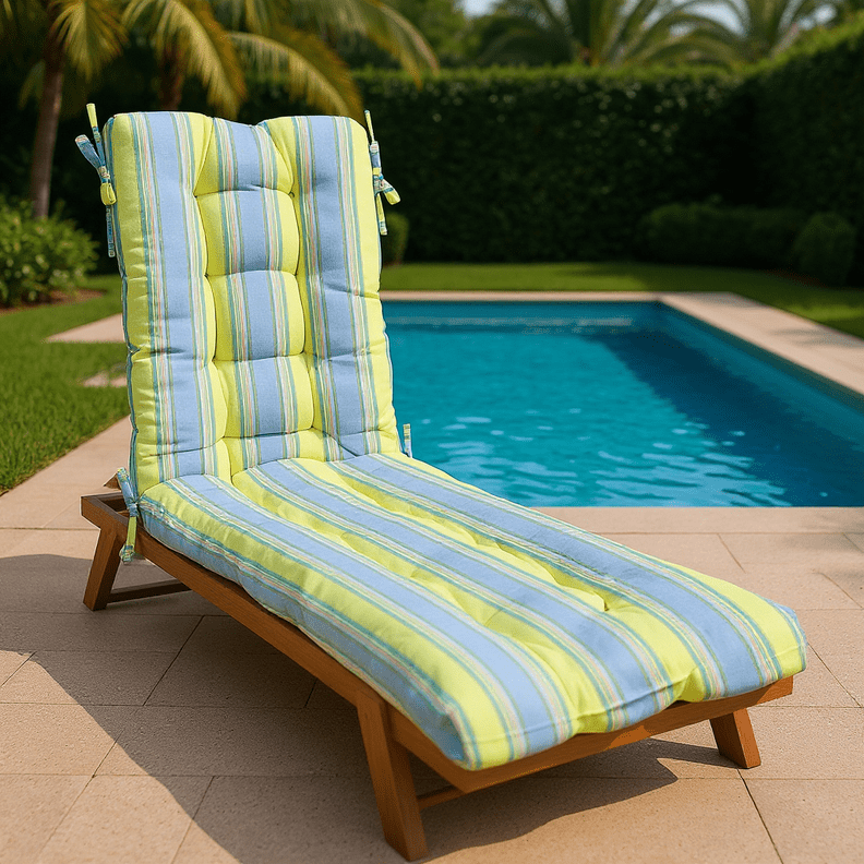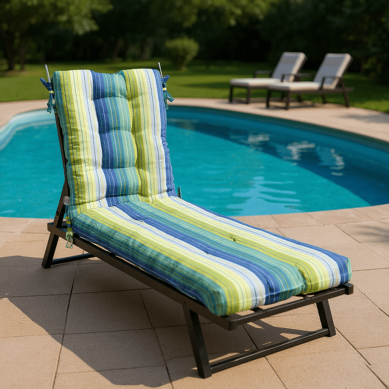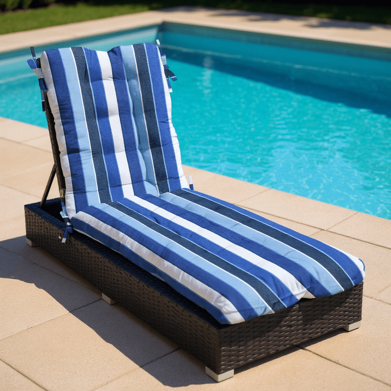 LASTING DESIGN: Our chaise lounge cushion is a single piece with a sewn hinge and sewn seams. Both pieces are filled with hypoallergenic hospitality-grade polyester fiberfill to provide both softness and durability. Designed to fit with style, this cushion includes two sets of ties to secure our cushion to your lounge chair.