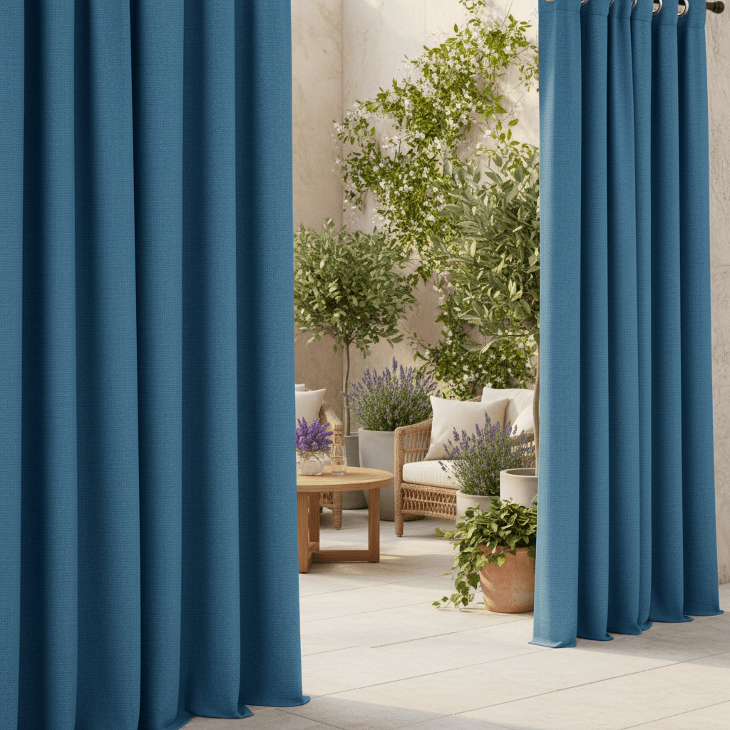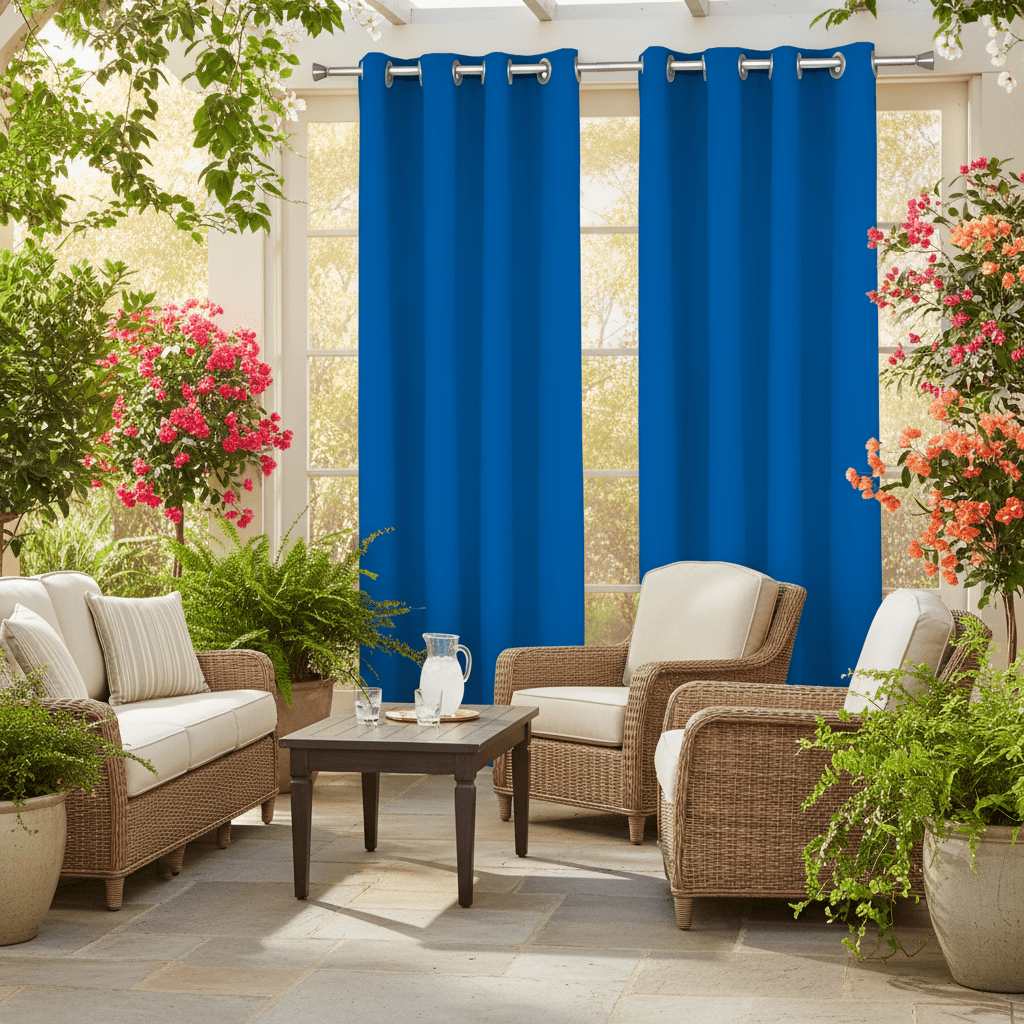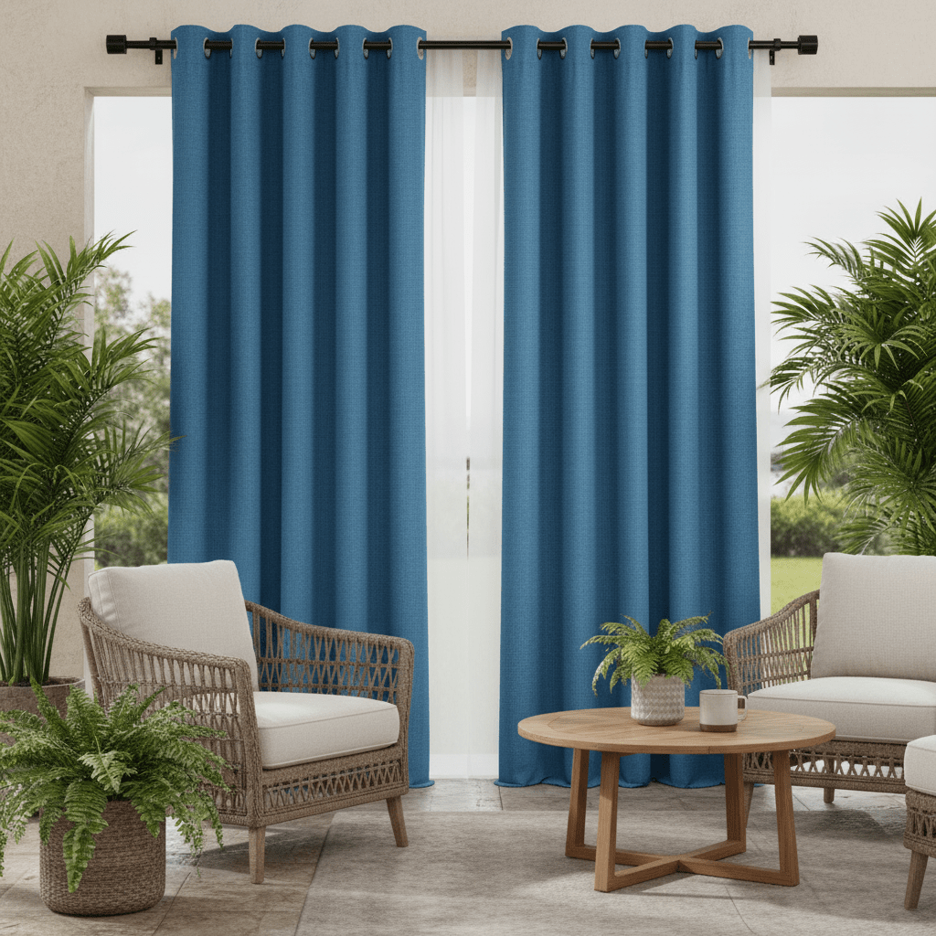 Sunbrella Canvas Blues Nickel Grommet Top Indoor/Outdoor Curtain Panel - RSH Decor