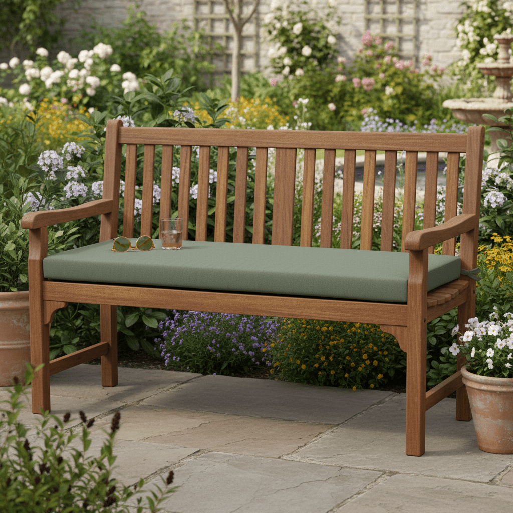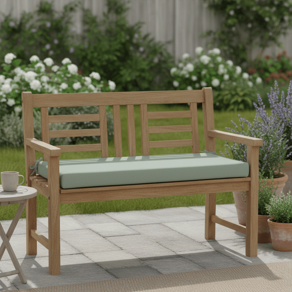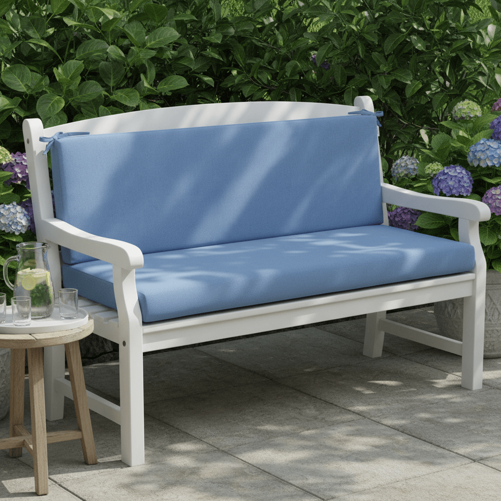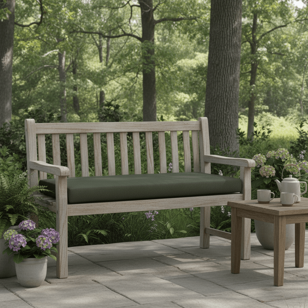 Sunbrella Cast Greens & Blues 3" Foam Bench Cushion with Ties - RSH Decor