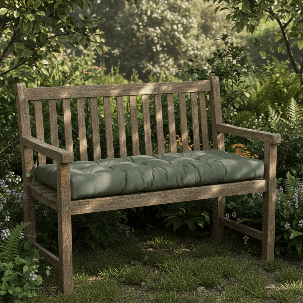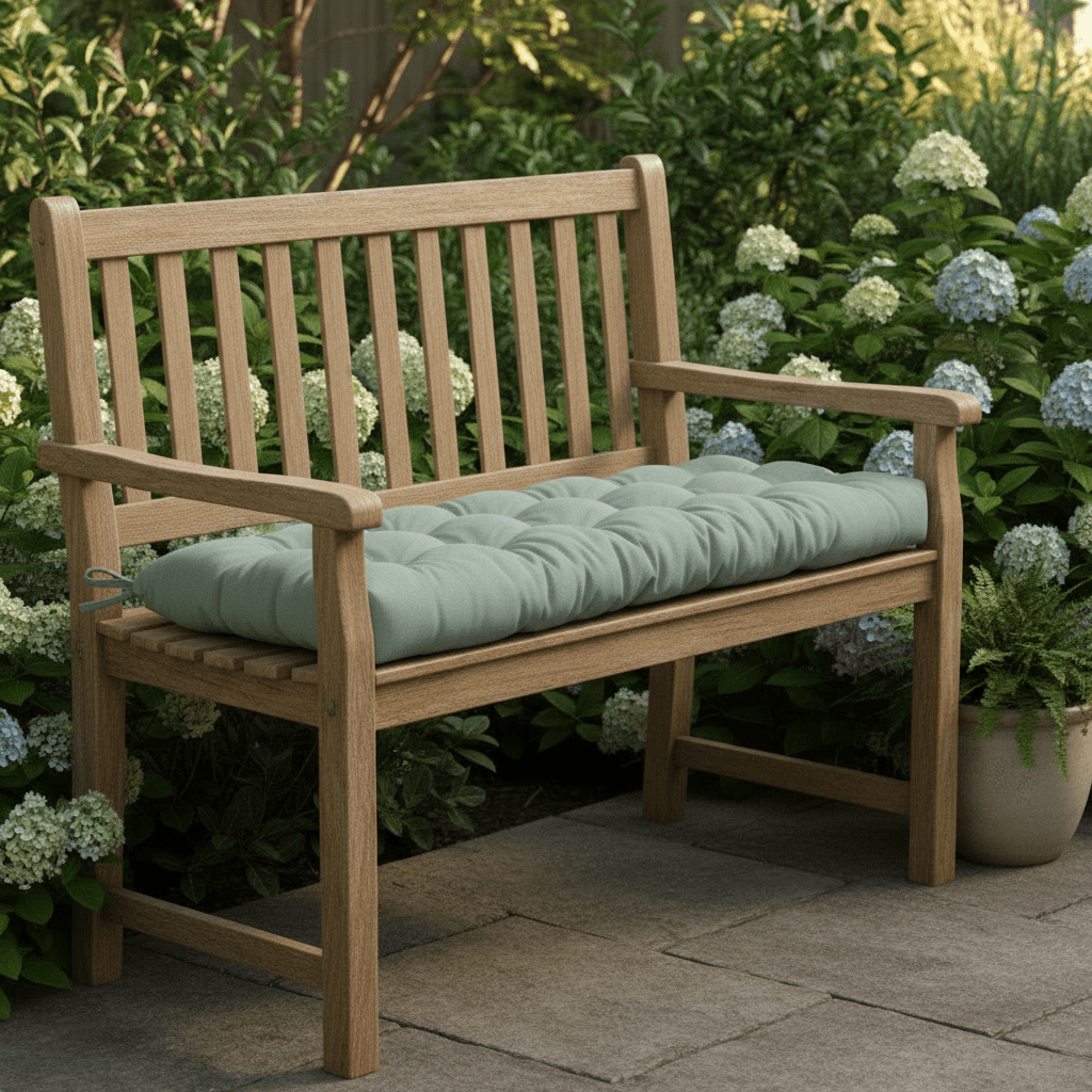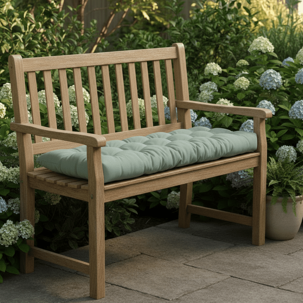 Sunbrella Cast Greens & Blues Tufted Bench Cushion with Ties - RSH Decor