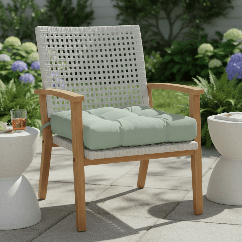 Sunbrella Cast Greens & Blues Tufted Dining Chair Cushion - RSH Decor