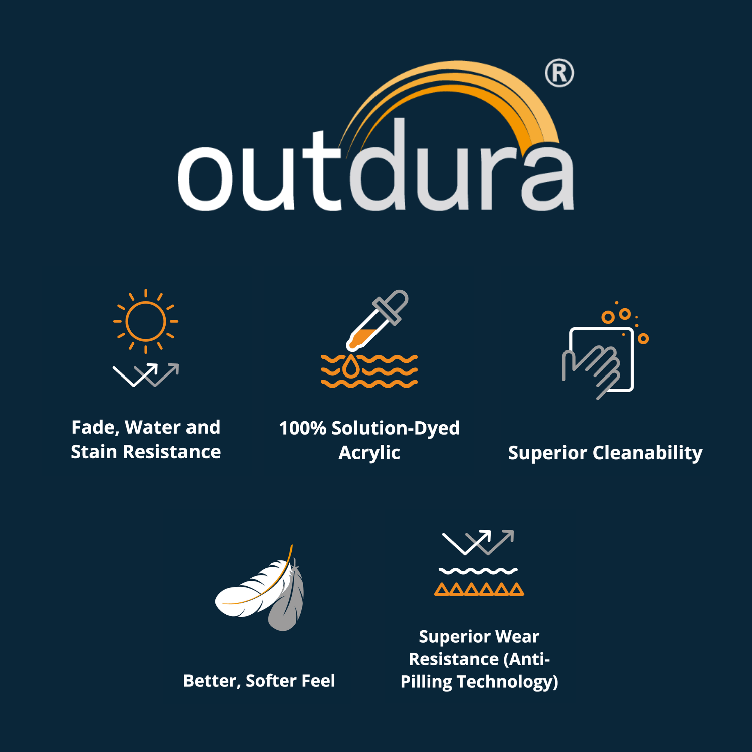 Premium Outdura Fabric – Woven from 100% solution-dyed acrylic, this cushion set resists fading, stains, and water, ensuring vibrant color and long-lasting beauty outdoors or indoors. Backed by Outdura's 10-year limited fabric warranty.