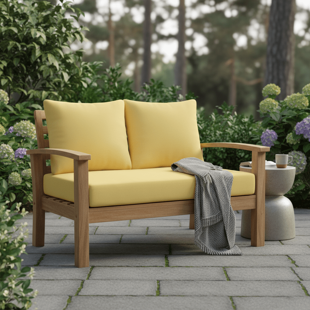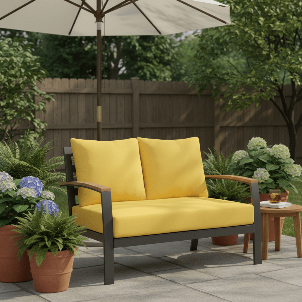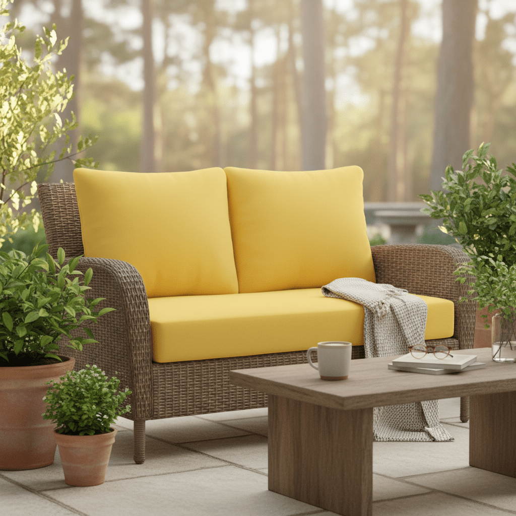 SIZE SPECIFICATIONS: Our loveseat cushion measures 46” W x 26” D x 5" thick and the 2 pillow back cushions are 25" W x 21" H. To ensure the best fit, measure your seat between the arms and from the base of the back to the top of the chair. Subtract 5” from the back measurements to account for the loveseat cushion.