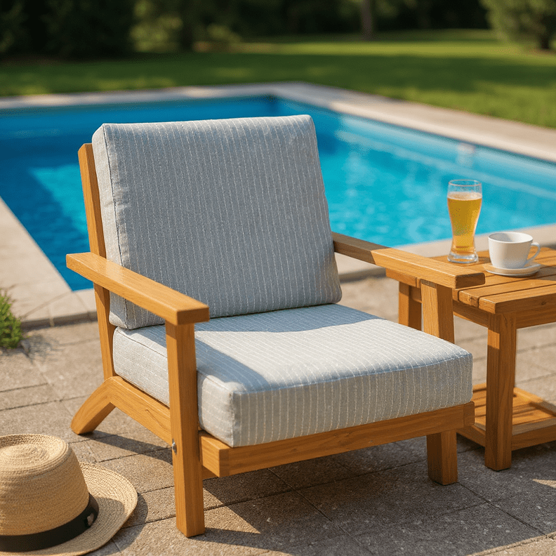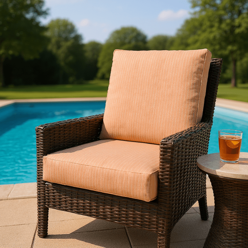 LASTING DESIGN: This deep seating set consists of a foam-filled seat cushion and a pillow back cushion. The bottom cushion is zipper-closed and contains a 5” thick poly foam insert and the pillow back cushion is closed with a sewn seam and filled with hypoallergenic hospitality-grade fiberfill.
