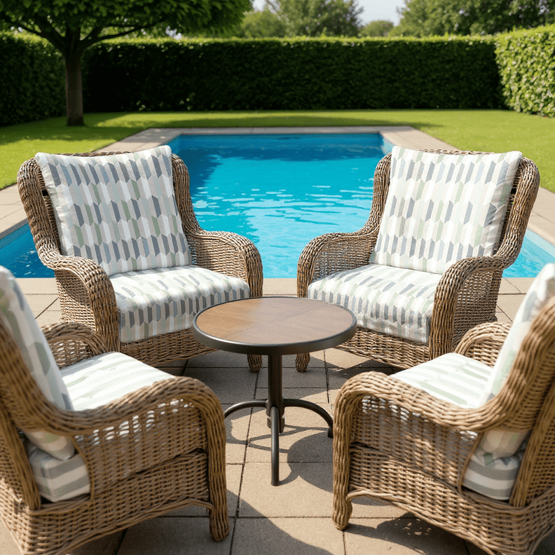LASTING DESIGN: This deep seating set consists of a foam-filled seat cushion and a pillow back cushion. The bottom cushion is zipper-closed and contains a 5” thick poly foam insert and the pillow back cushion is closed with a sewn seam and filled with hypoallergenic hospitality-grade fiberfill.