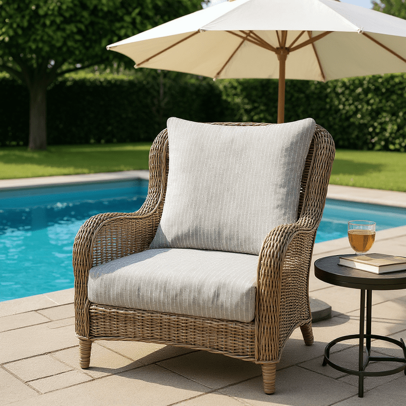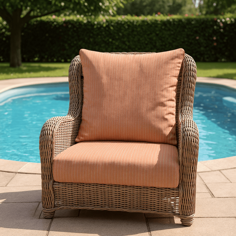 LASTING DESIGN: This deep seating set consists of a foam-filled seat cushion and a pillow back cushion. The bottom cushion is zipper-closed and contains a 5” thick poly foam insert and the pillow back cushion is closed with a sewn seam and filled with hypoallergenic hospitality-grade fiberfill.