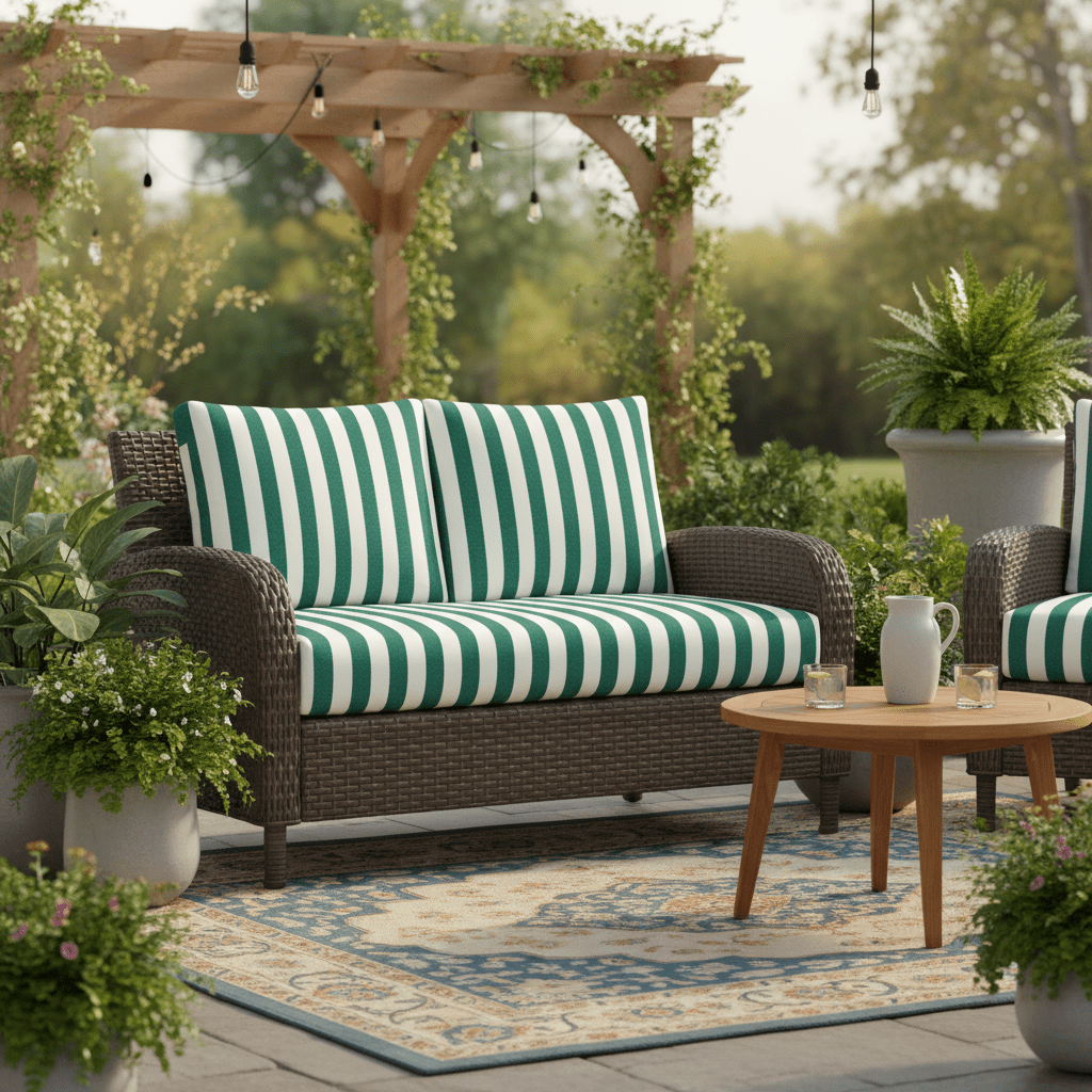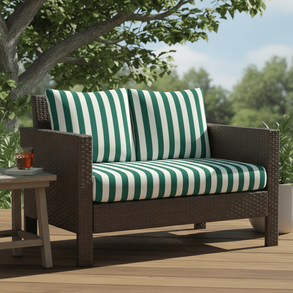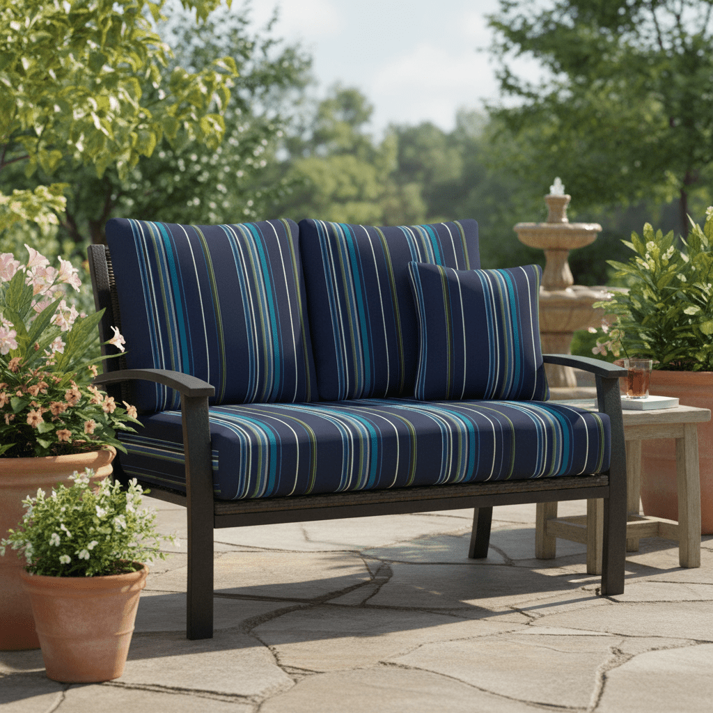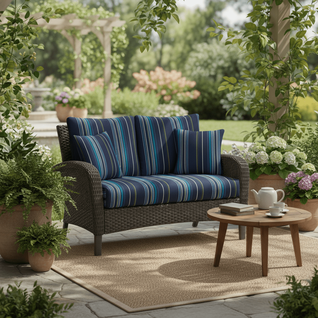 SIZE SPECIFICATIONS: Our loveseat cushion measures 46” W x 26” D x 5" thick and the 2 pillow back cushions are 25" W x 21" H. To ensure the best fit, measure your seat between the arms and from the base of the back to the top of the chair. Subtract 5” from the back measurements to account for the loveseat cushion.
