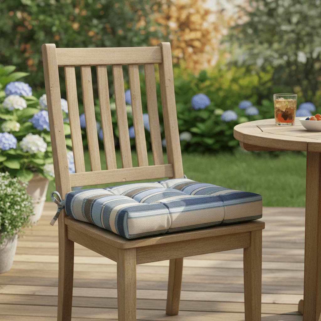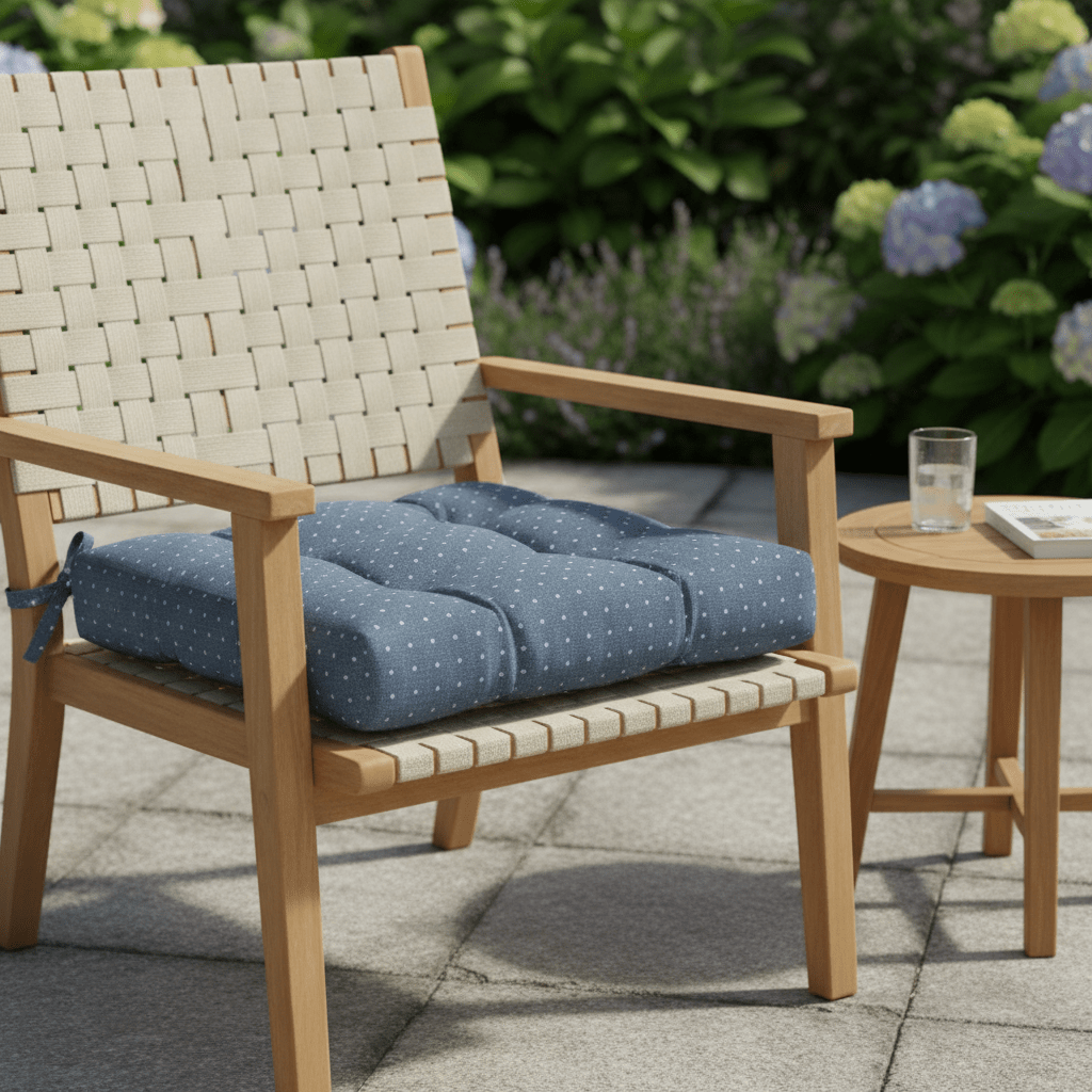 Sunbrella Desiger Fusion Blues Tufted Dining Chair Cushion - RSH Decor