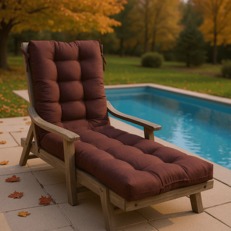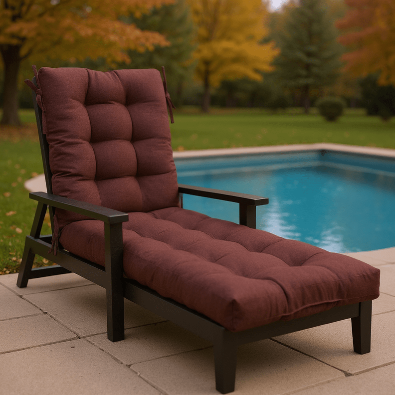 LASTING DESIGN: Our chaise lounge cushion is a single piece with a sewn hinge and sewn seams. Both pieces are filled with hypoallergenic hospitality-grade polyester fiberfill to provide both softness and durability. Designed to fit with style, this cushion includes two sets of ties to secure our cushion to your lounge chair.