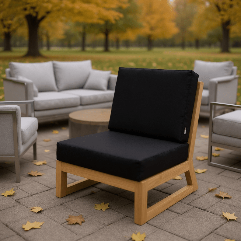 LASTING DESIGN: This deep seating set consists of separate zipper-closed seat and back cushions with foam inserts. The bottom cushion contains a 5” thick poly foam insert and the back cushion contains a 3” thick foam insert to provide comfort and support. Cushions are reversible for extended use.