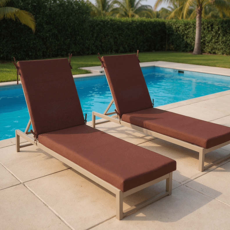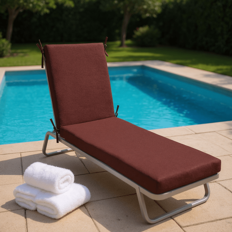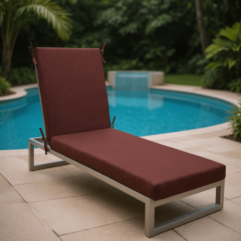LASTING DESIGN: Our chaise lounge cushion is a single piece with a sewn hinge and sewn seams. Both pieces are filled with hypoallergenic hospitality-grade polyester fiberfill to provide both softness and durability. Designed to fit with style, this cushion includes two sets of ties to secure our cushion to your lounge chair.