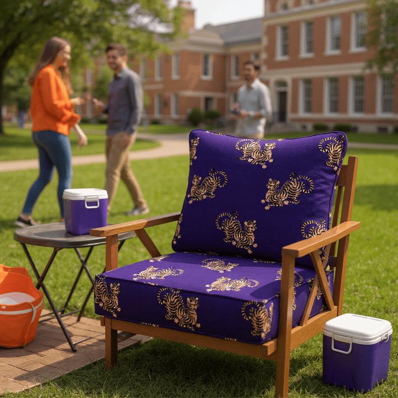 Sunbrella Orange & Purple Collegiate Deep Seating Pillow Back Chair Cushion Set - RSH Decor