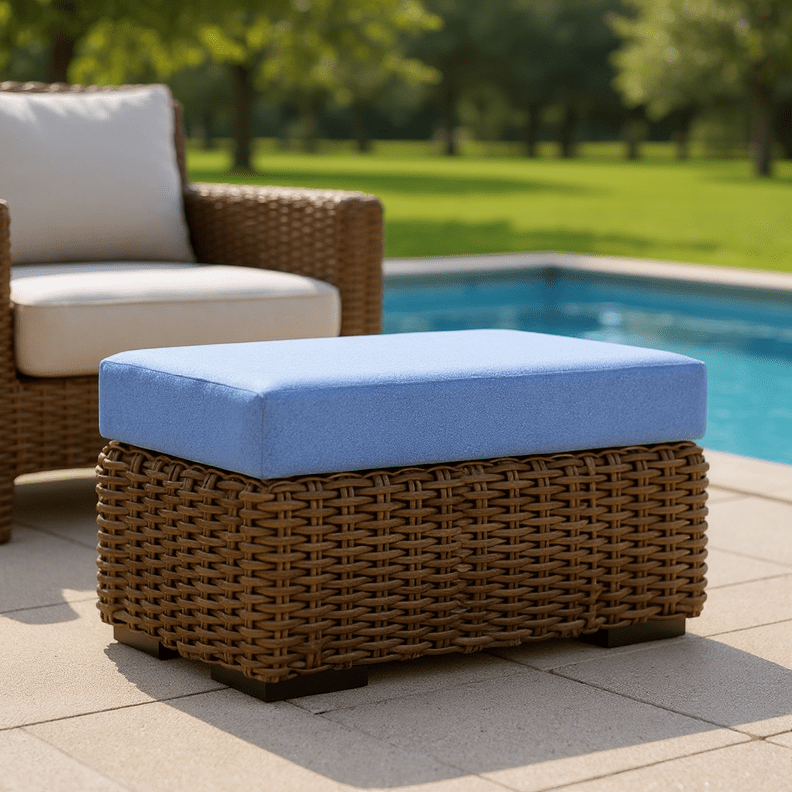 For those seeking the pinnacle of performance, our ottoman cushions feature Sunbrella fabric, crafted from 100% solution-dyed acrylic. This premium material is not only water-resistant, ensuring protection against the elements, but also fade-resistant, retaining its vibrant colors even under the sun's relentless rays. Stain resistance is a given, making spills and mishaps a breeze to manage. With Sunbrella fabric, you're investing in cushions that remain as beautiful as they are functional, year after year.