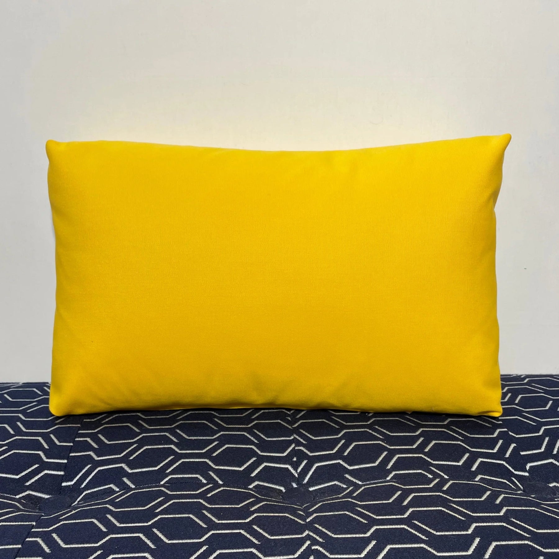 Our Eclipse Lumbar Pillow is a fun and functional decorative pillow. It features a Sunflower, White and Tangerine front, with a Sunflower back panel.