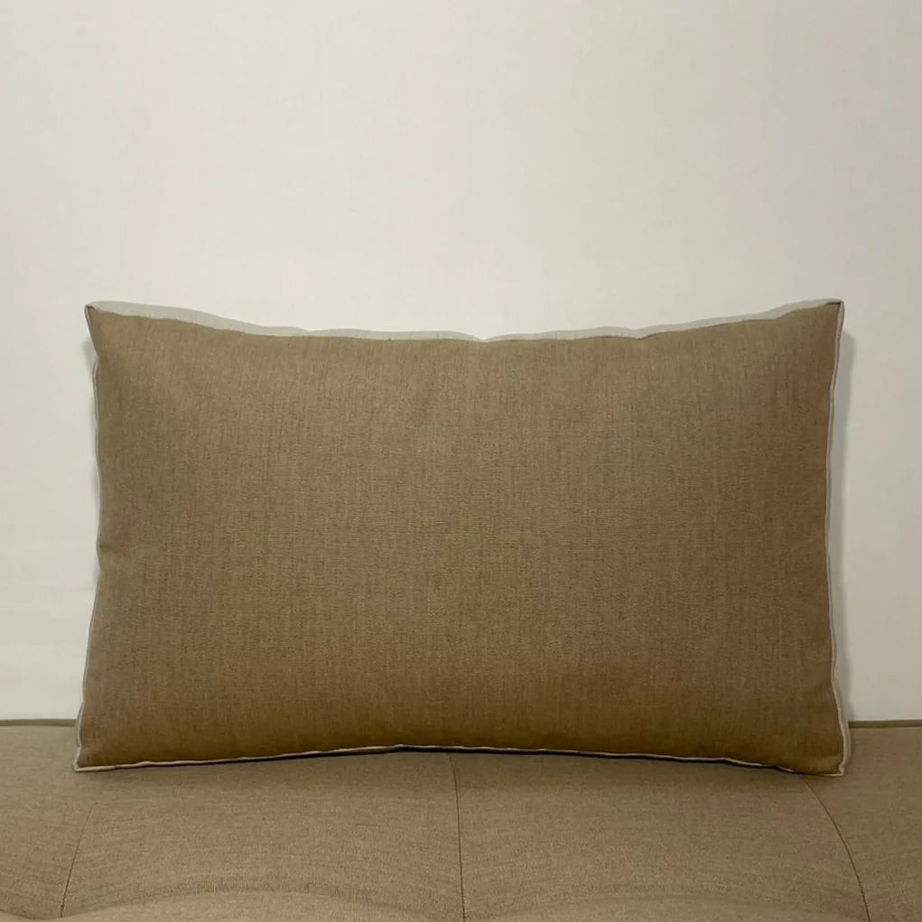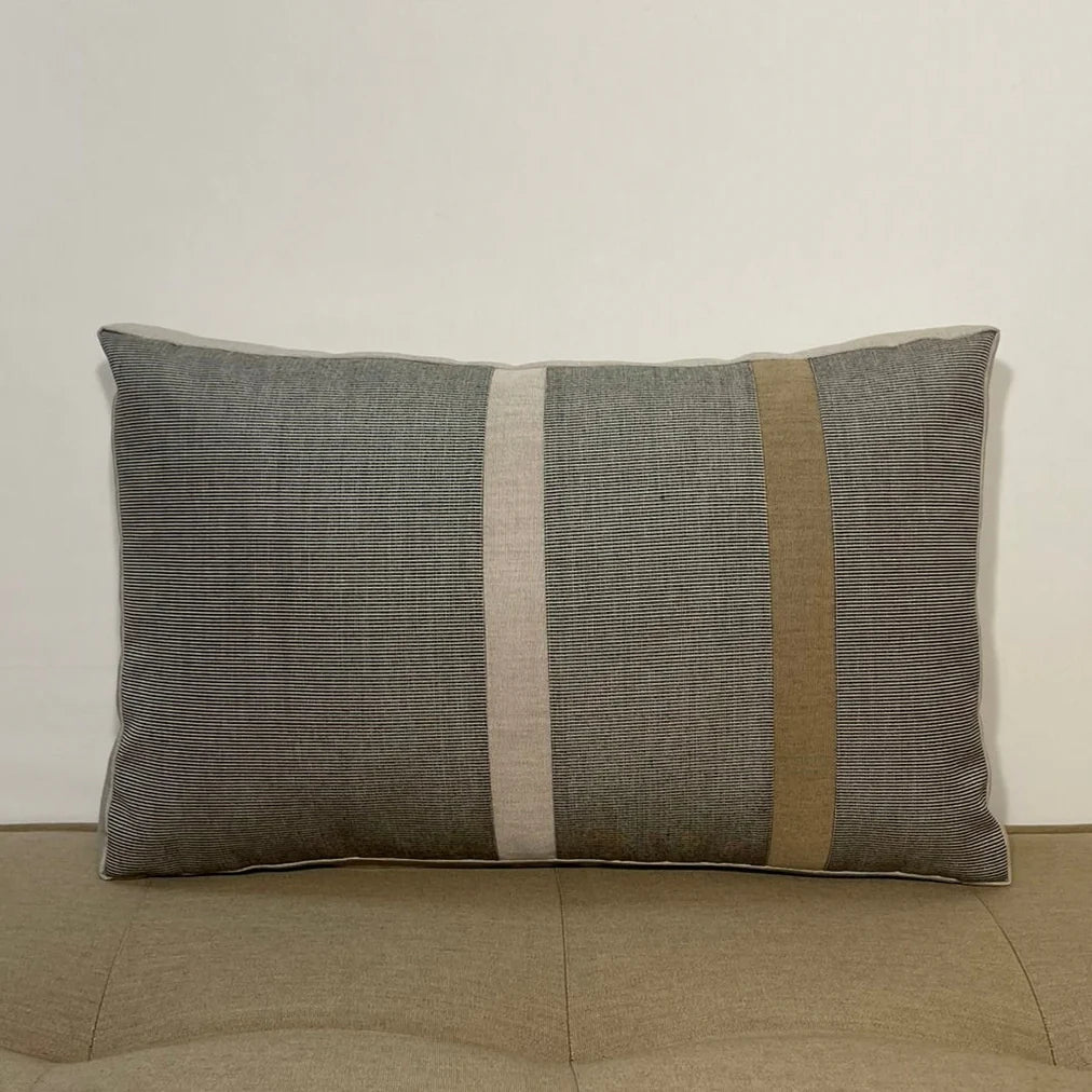 Our Duo Stripe Lumbar Pillow is a fun and functional decorative pillow. It features a Flint face with Flax and Heather Beige 1" Stripes, Flax side panel, and Heather Beige backside.