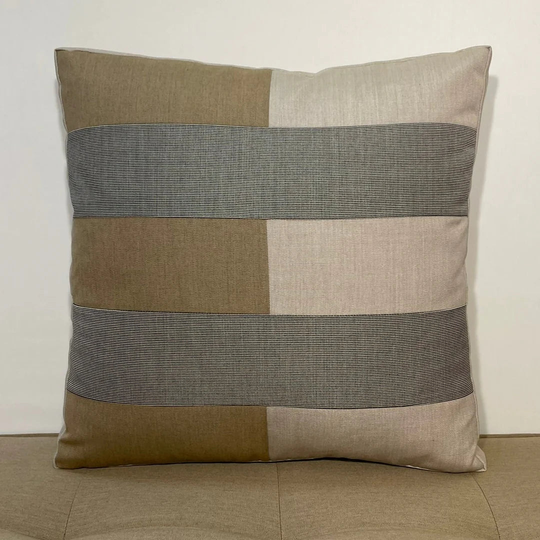 Our Tiles Pillow is a fun and functional decorative pillow. It features a Flint, Heather Beige, and Flax face, Flax side panel, and Heather Beige backside.