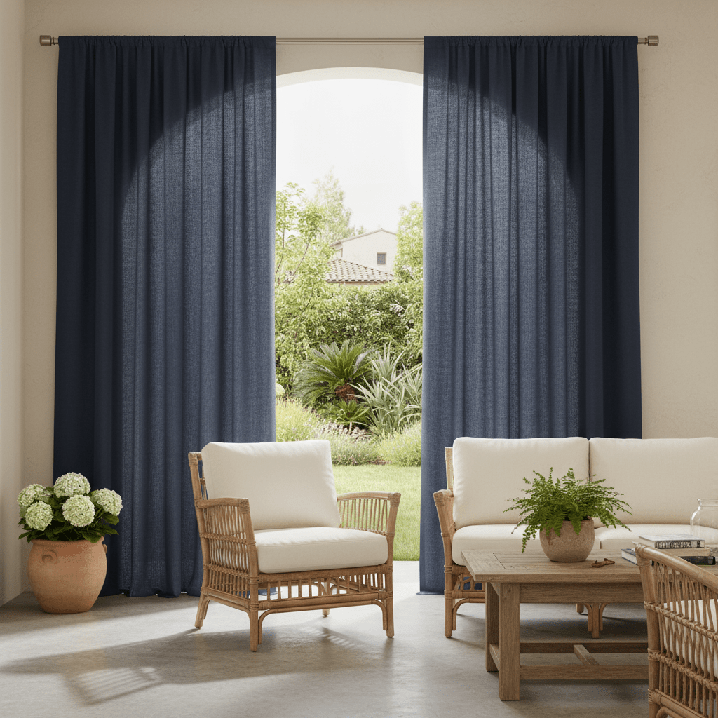PREMIUM FABRIC: Our curtains are woven with solution-dyed acrylic, with the color added during the manufacturing of the synthetic thread fiber. Sunbrella is a heavy duty yet lightweight acrylic blend that is resistant to fading and staining.